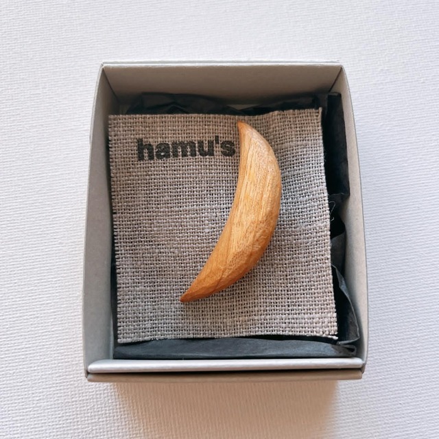hamu's作品 ※通常販売と抽選販売は、一緒にはご購入いただけません □コンセプト 「木を纏う、木と暮らす」 木という素材の力を大切にしながら、“温もりを感じるかわいい”をお届けしています。 □通常販売期間:12月4日21時~20日23時59分 サクラの木で1点1点お作りしています、お月さまのブローチ。 お気に入りに付けて、お楽しみください♡ □サイズ : 縦5cm×横1.5cm (約) ブローチ金具:ゴールド2.5㎝(約) □素材:木・サクラ、蜜蝋ワックス □お取扱注意 ・水濡れには気をつけてください ・環境により木が変形したり、割れなどが生じる場合がございます。 ※お取り扱い説明書をお付けしておりますので、ご確認の程お願いします □商品について ・照明の関係により、実際よりも色味が違って見える場合があります。 ・パソコン・スマートフォン等の環境により若干製品と画像のカラーが異なる場合もございますので、ご了承の程お願いします。 □商品の返品について ・お客様都合によるご注文後のキャンセルは一切お受けしておりません。 ・イメージと違う等のお客様都合でのキャンセル・ご返金・交換も承っておりません。ご了承の程お願い致します。 □発送について ・クリックポスト、レターパック、ゆうパックで発送が可能です。 ・ゆうパックのみ、時間指定がある方はご購入時備考欄にご記入下さい ・(1万円以上送料無料) ※万が一、商品が発送間に紛失した場合保証がございませんので、ご了承の程お願い致します。