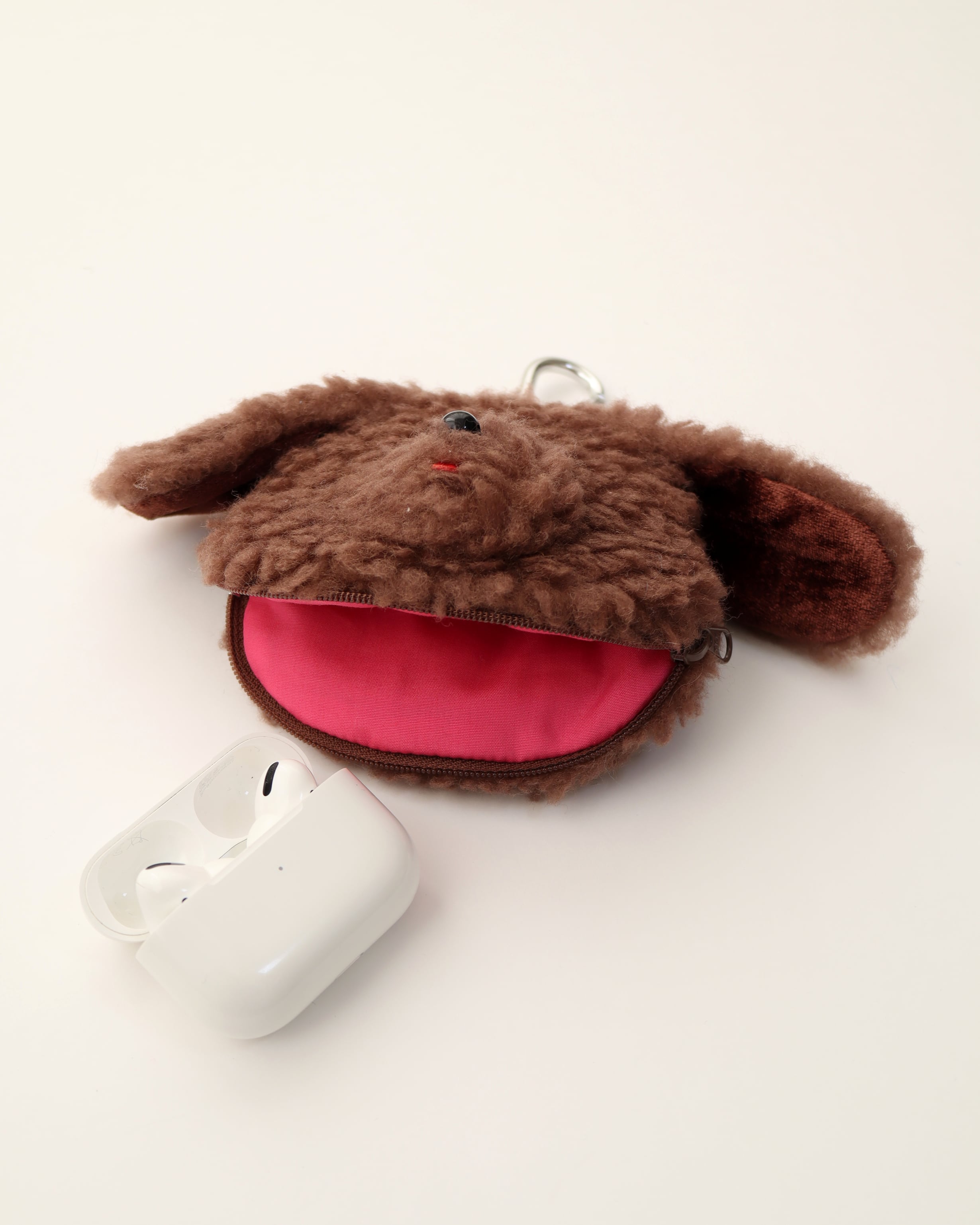 □カラナビが付いたミニポーチです。ココア色の毛並と垂れ耳が特徴の’’COCOA''です。