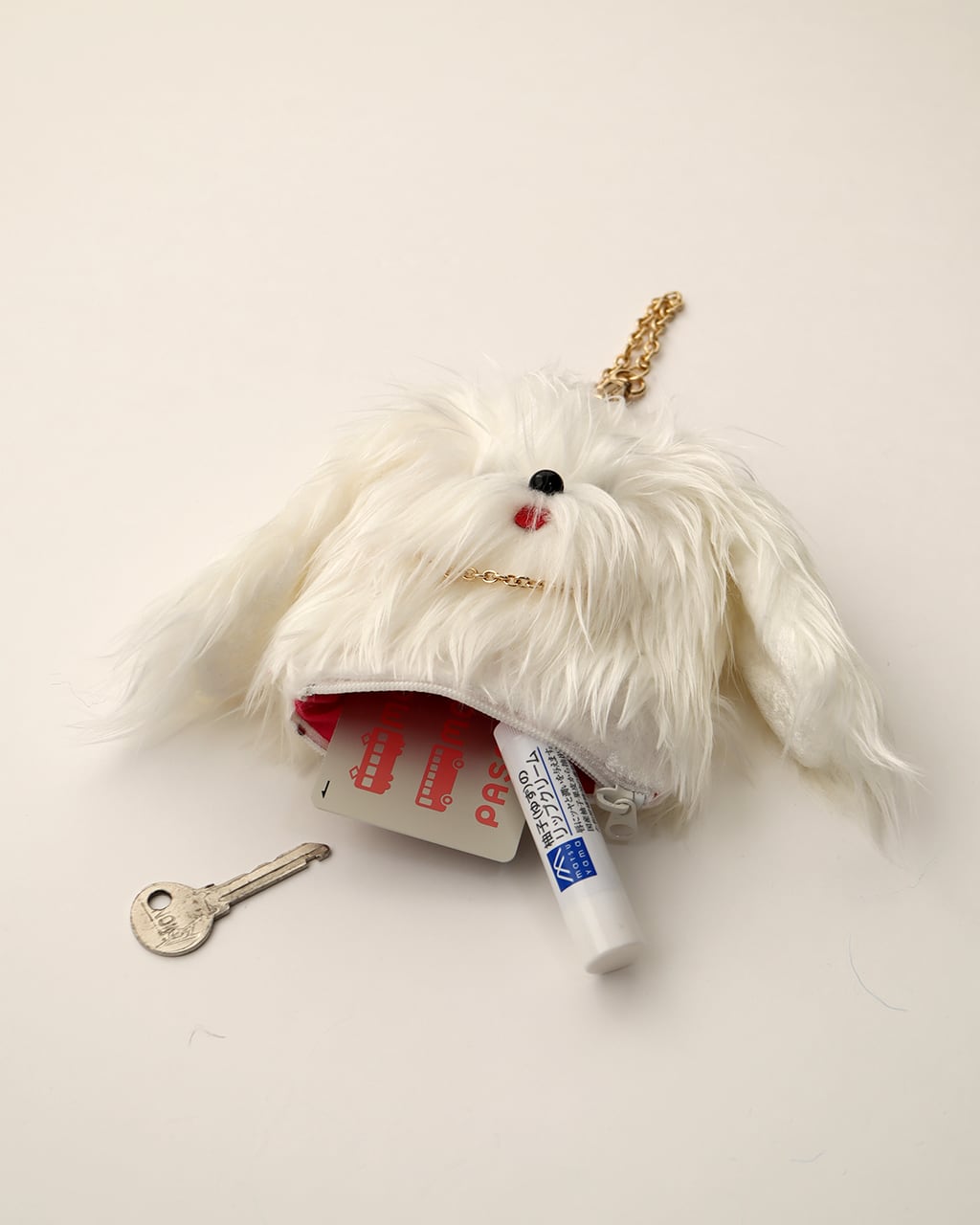 猫と犬をモチーフにした、ふわふわ素材のバッグチャームを制作しています。バッグチャームは全てポーチになっていて、日常の小さなものを収納できるようになっています。思わず笑顔になるような表情の、小さな相棒たちをお届けします。