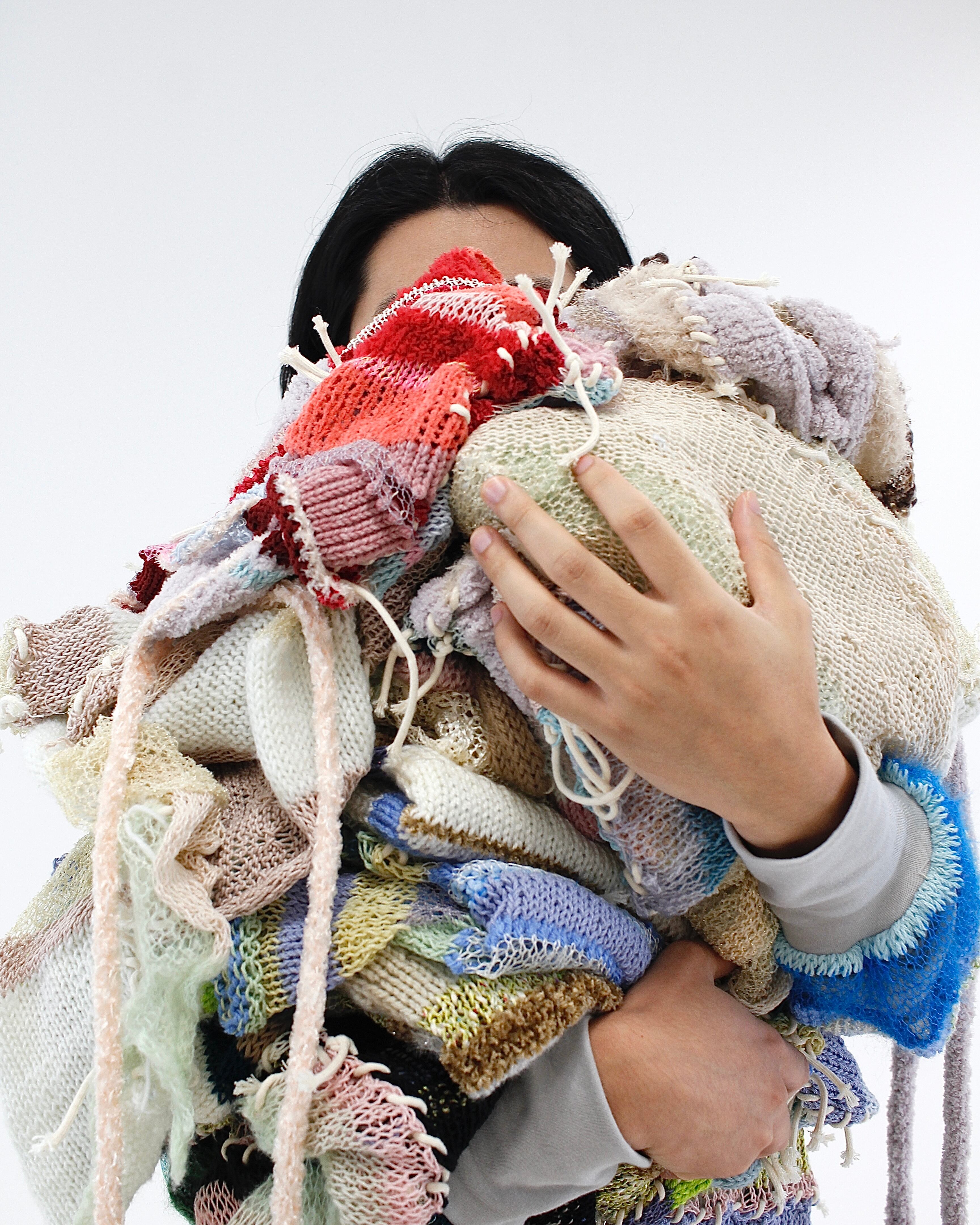 コットン、モヘア、ナイロン、アクリルなどさまざまな毛糸を組み合わせています。