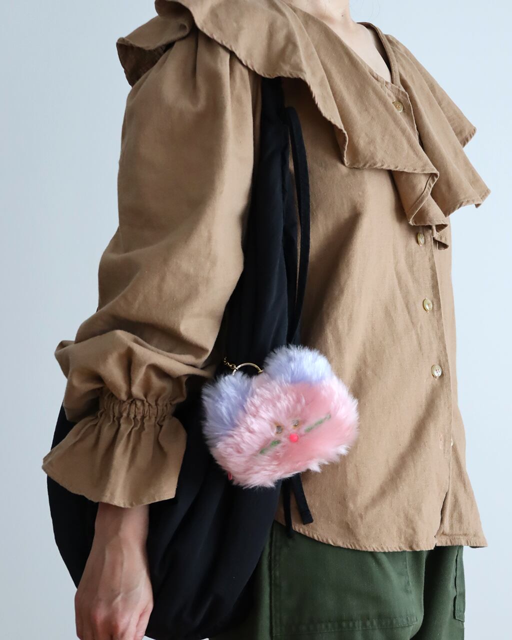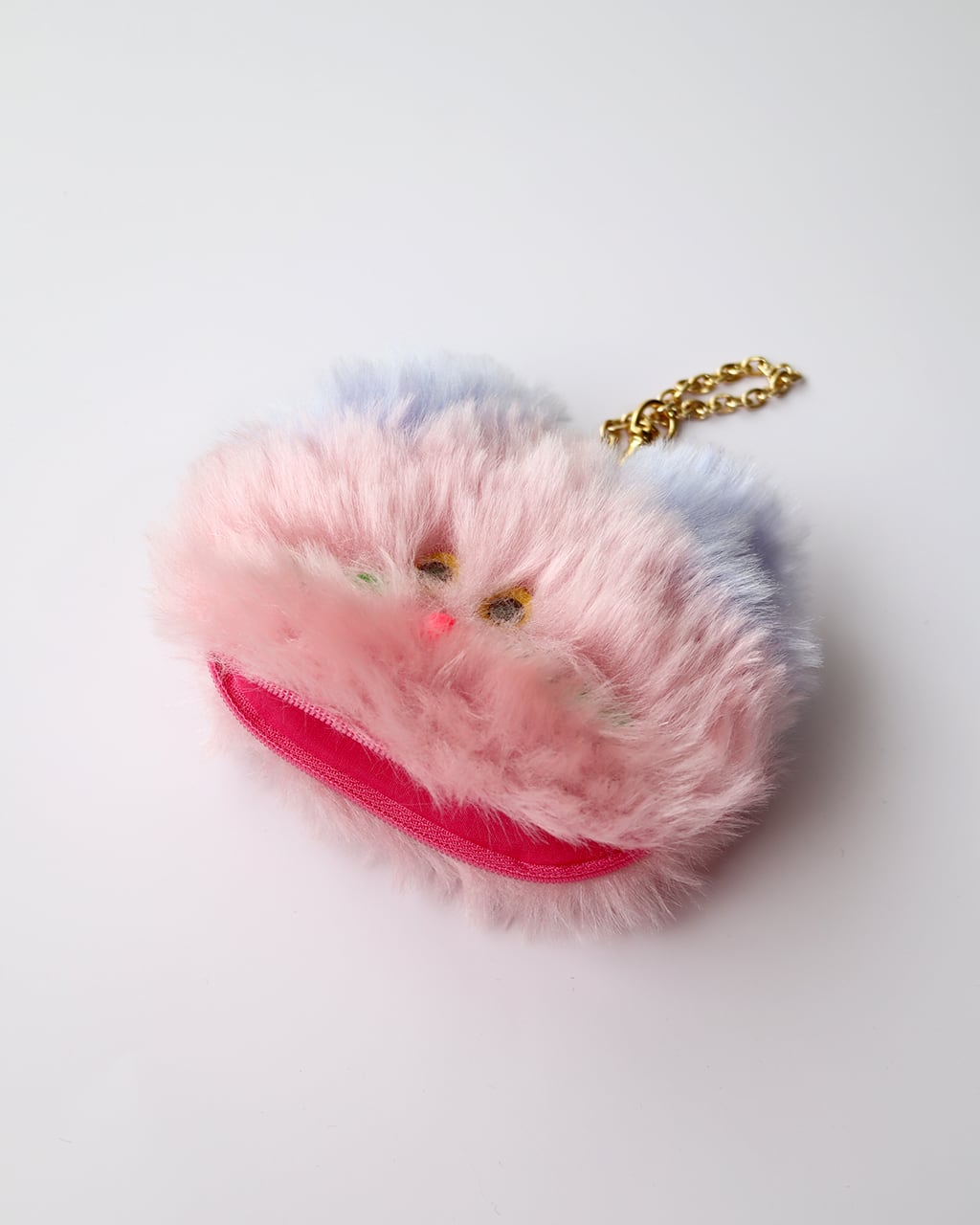 猫と犬をモチーフにした、ふわふわ素材のバッグチャームを制作しています。バッグチャームは全てポーチになっていて、日常の小さなものを収納できるようになっています。思わず笑顔になるような表情の、小さな相棒たちをお届けします。