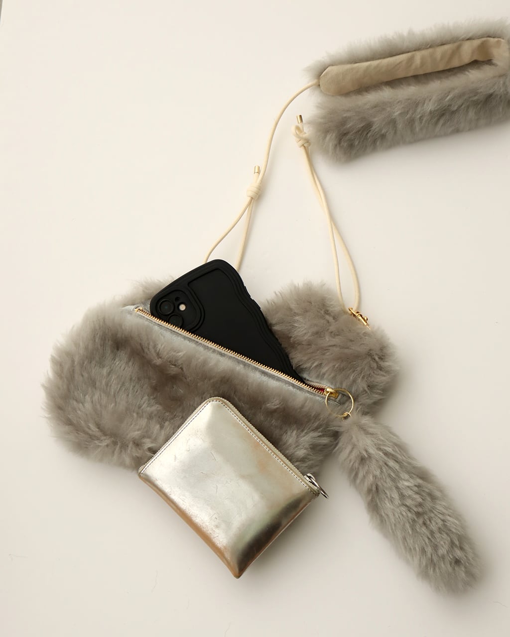 □ふわふわ毛並みがかわいい、グレー猫のミニバッグです。