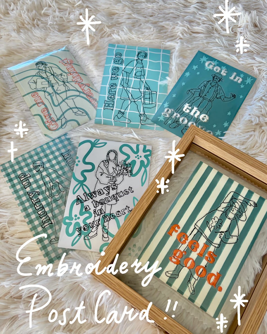 日常の何気ない瞬間や独自の世界観をユーモアを織り混ぜカラフルに描く刺繍イラストレーター。フリーモーションというミシン刺繍テクニックと、ペイントでポップに表現したアート作品や刺繍雑貨を製作しています