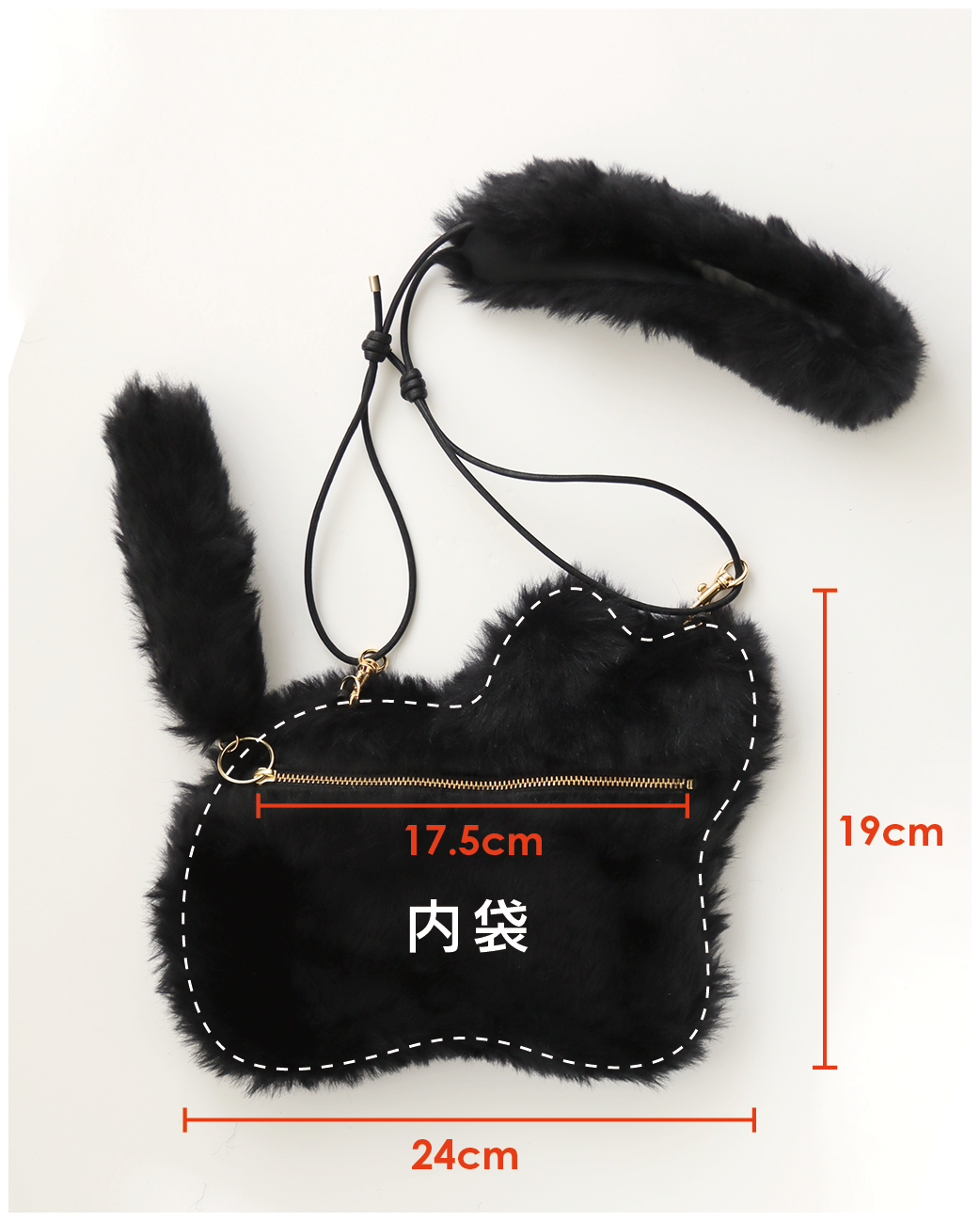 □サイズ : 外側:W:約24cm H:約20cm (いずれも最大値、ファーの毛足は含みません)