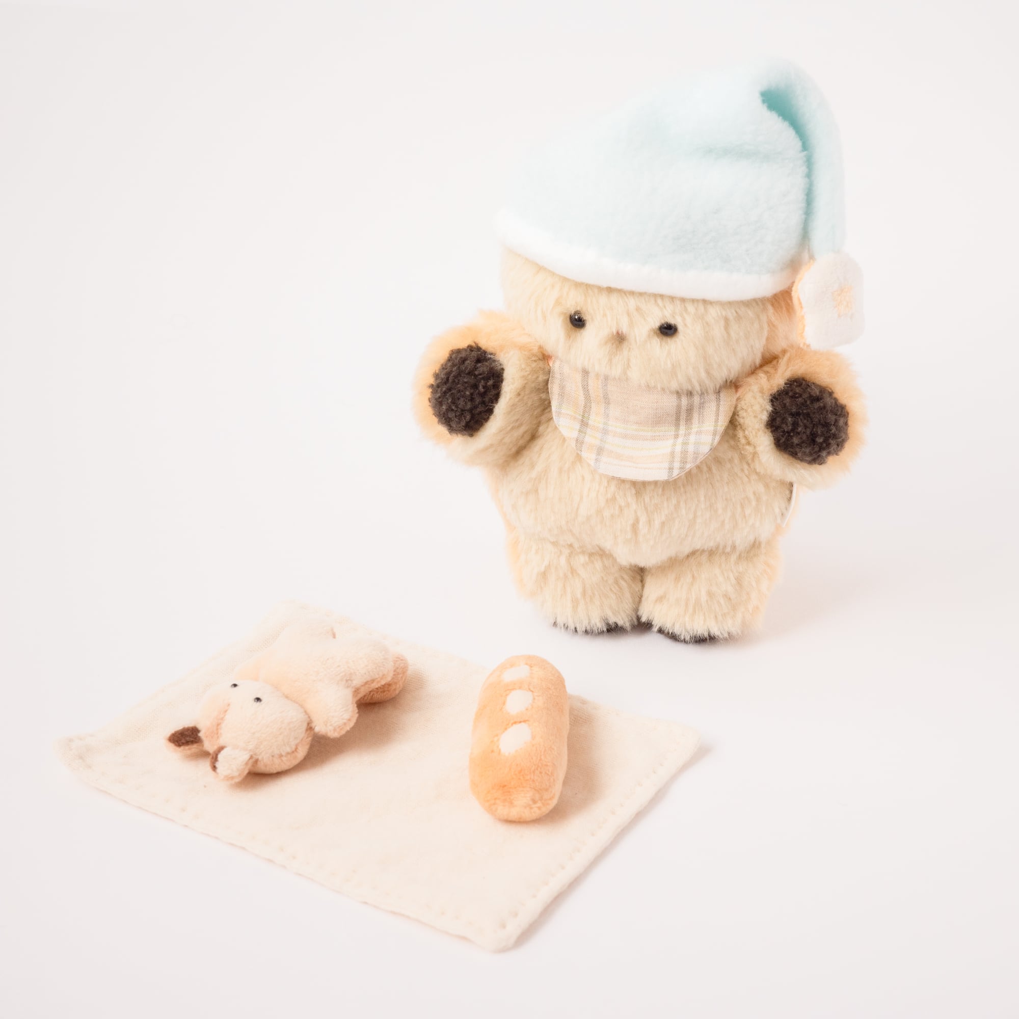 ナイトキャップにはバタートーストのモチーフが付いています。