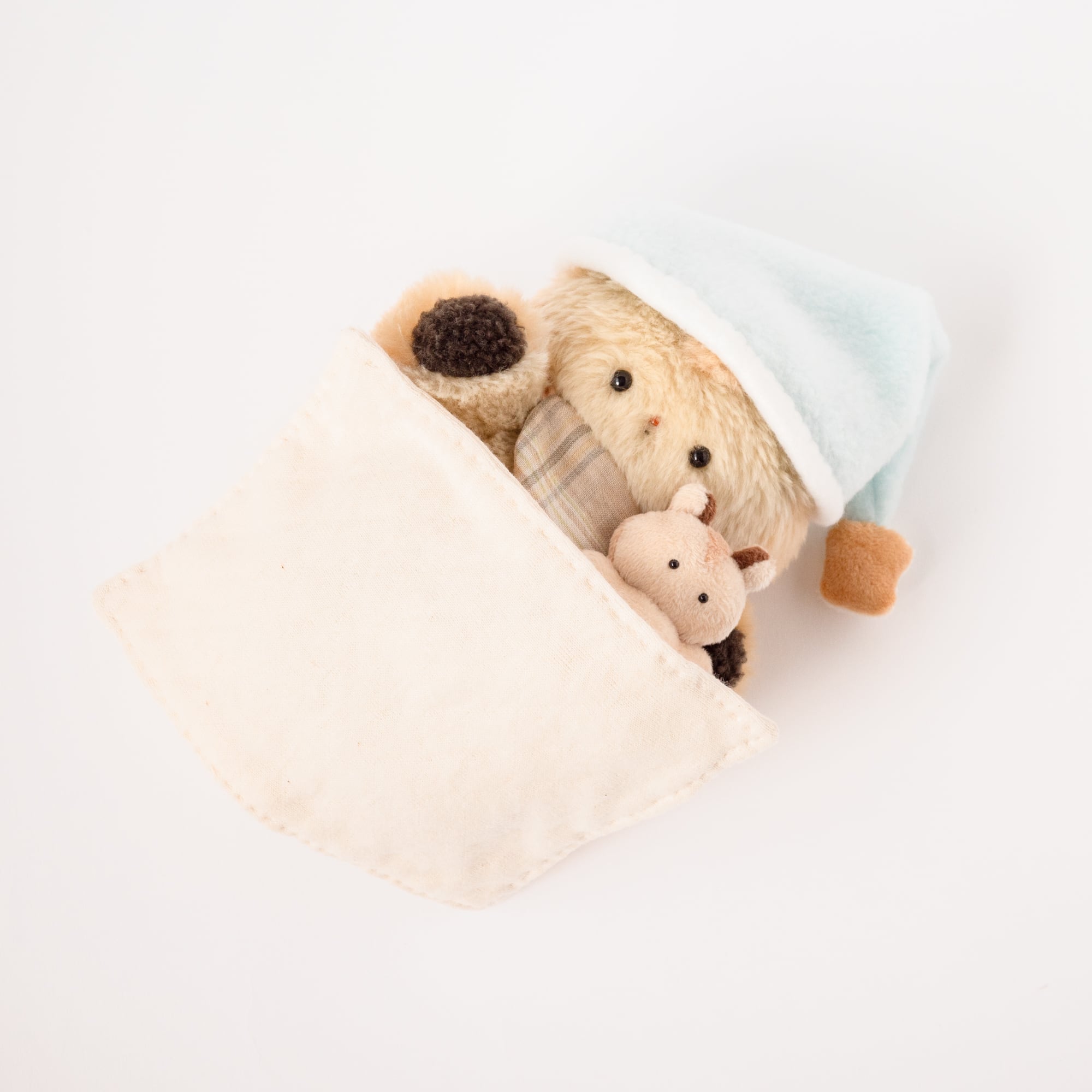 お気に入りのナイトキャップとブランケットがあると、ぐっすり眠ってくれます。