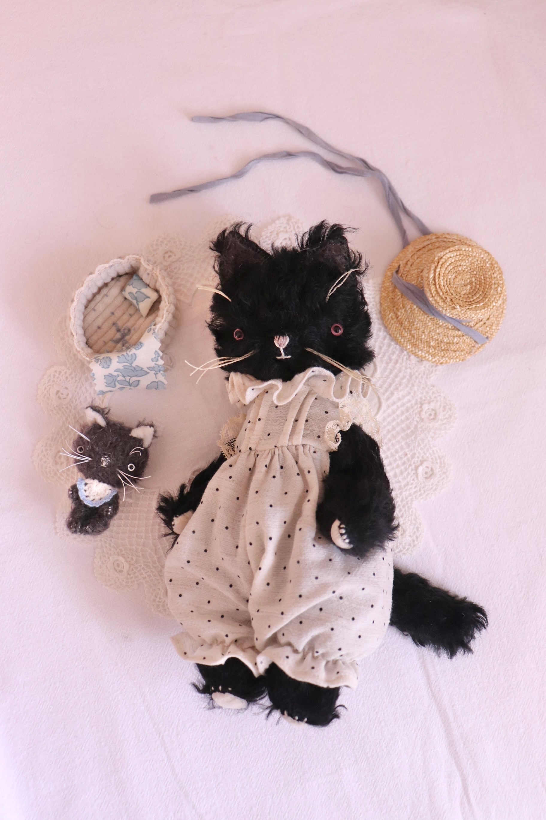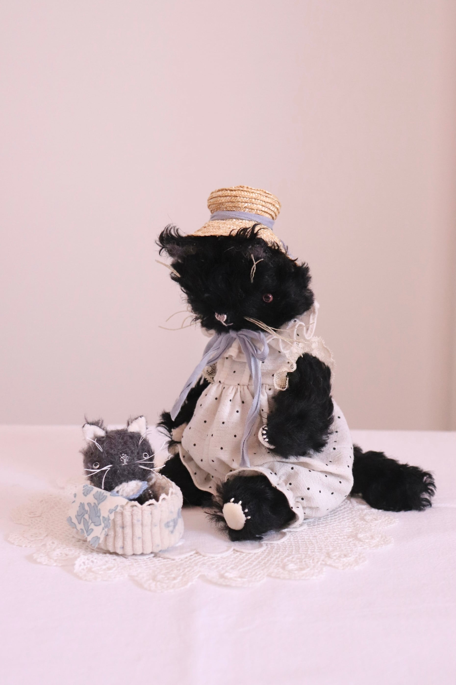 黒ねこのお母さんのお洋服はヴィンテージレースを使用しています。