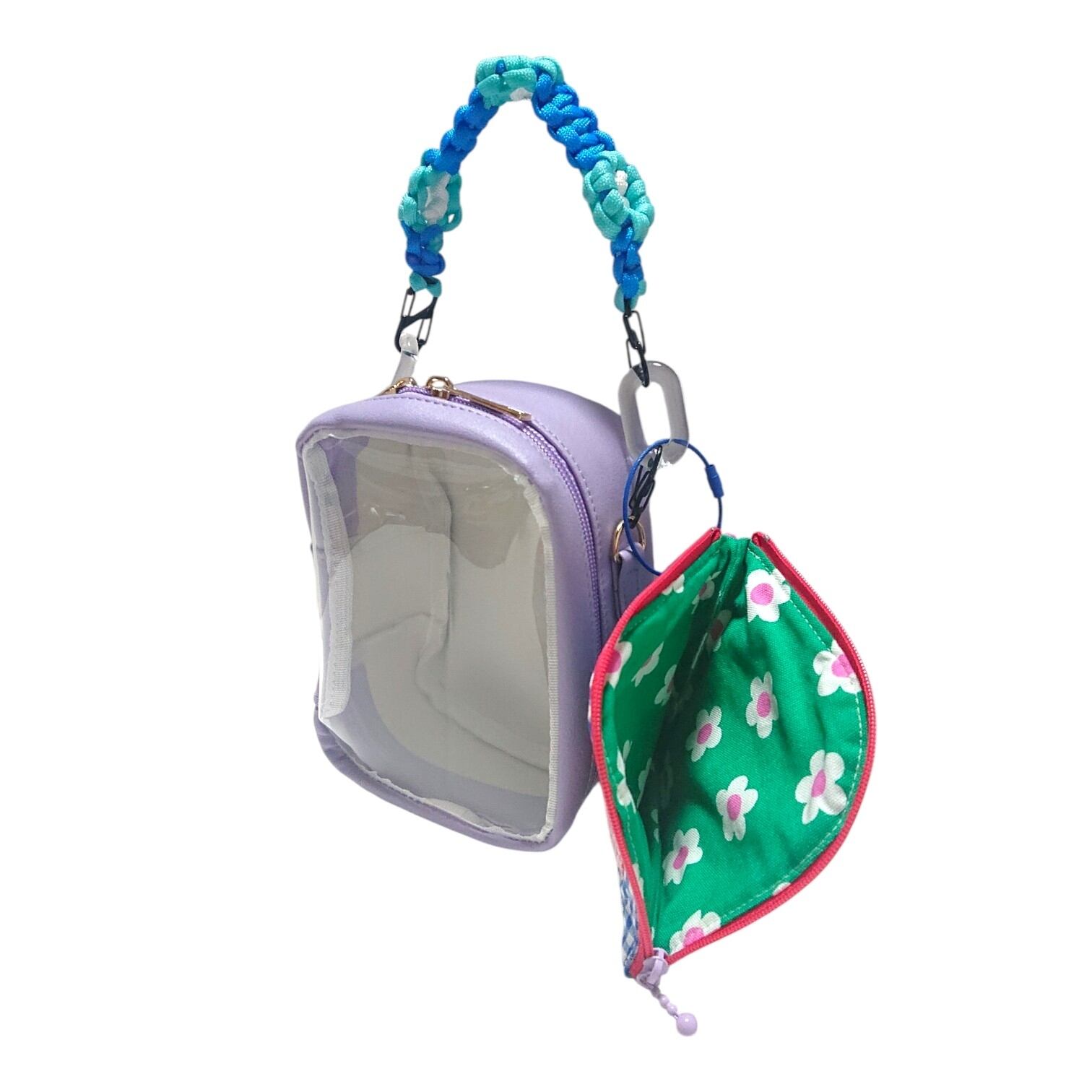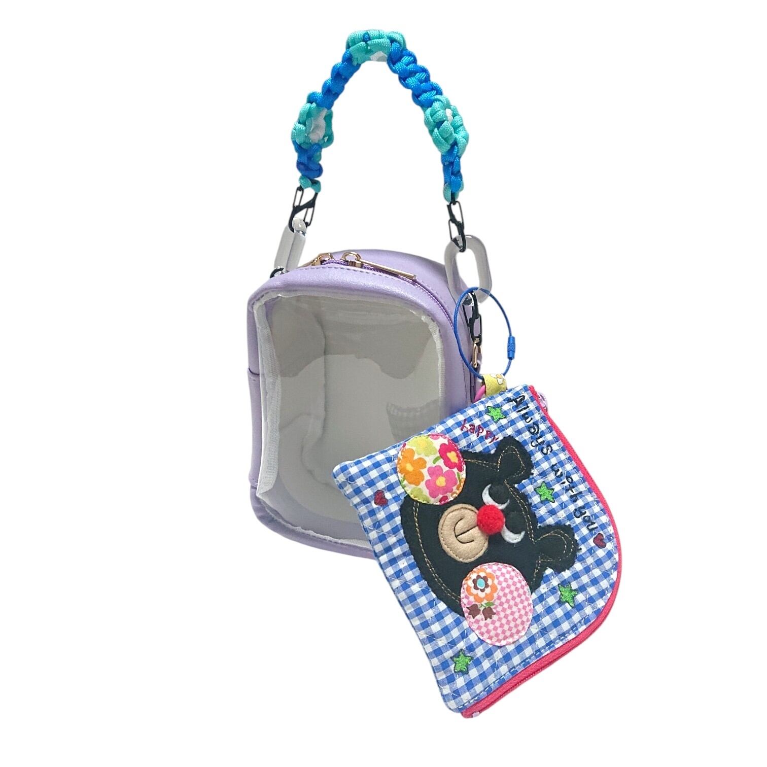 裏面にポケットもついていて便利です。ぬいぐるみポーチと同色の持ち手も一緒にお付けしてお届け致します。