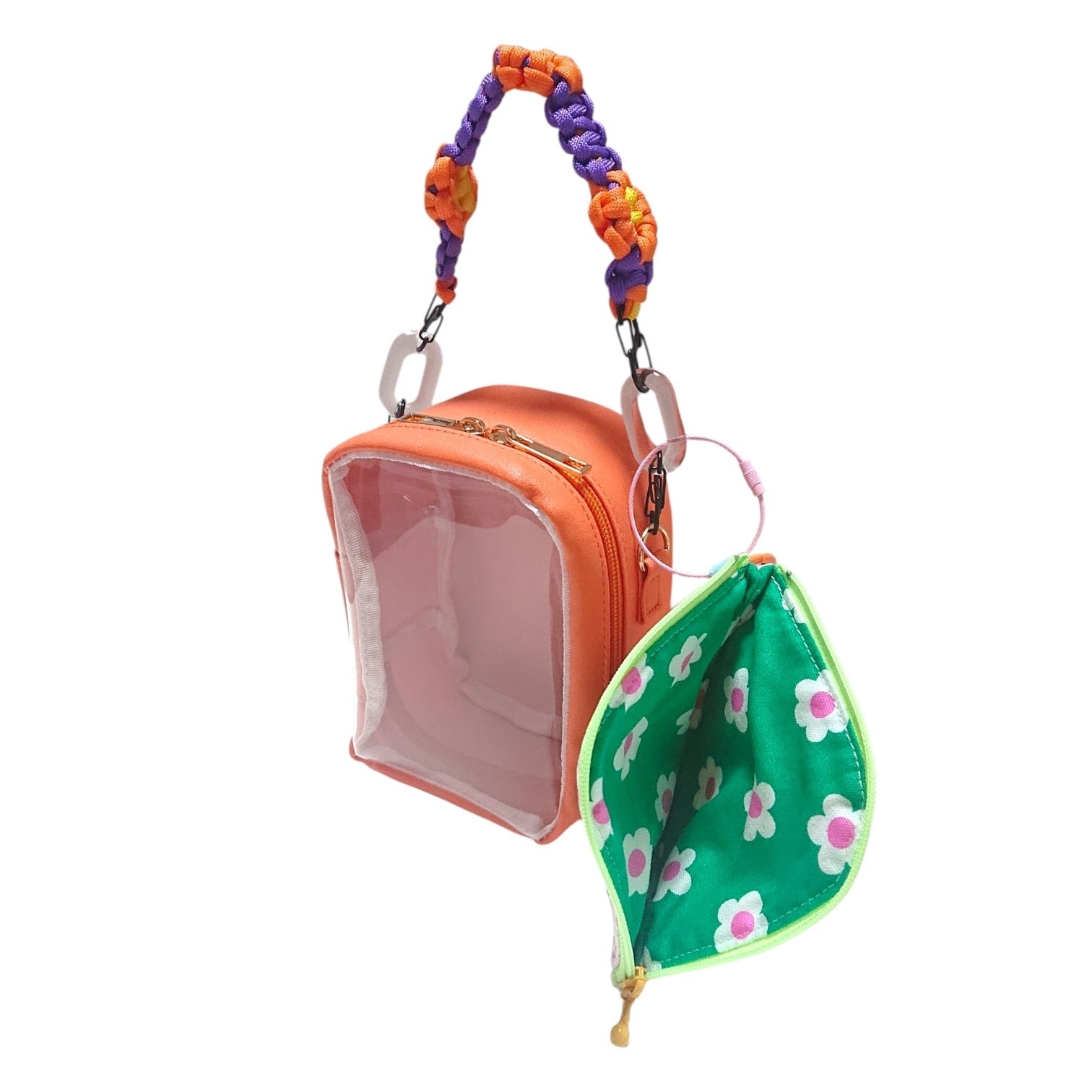 □中身が見えるクリア窓に、出し入れしやすいダブルファスナー付き