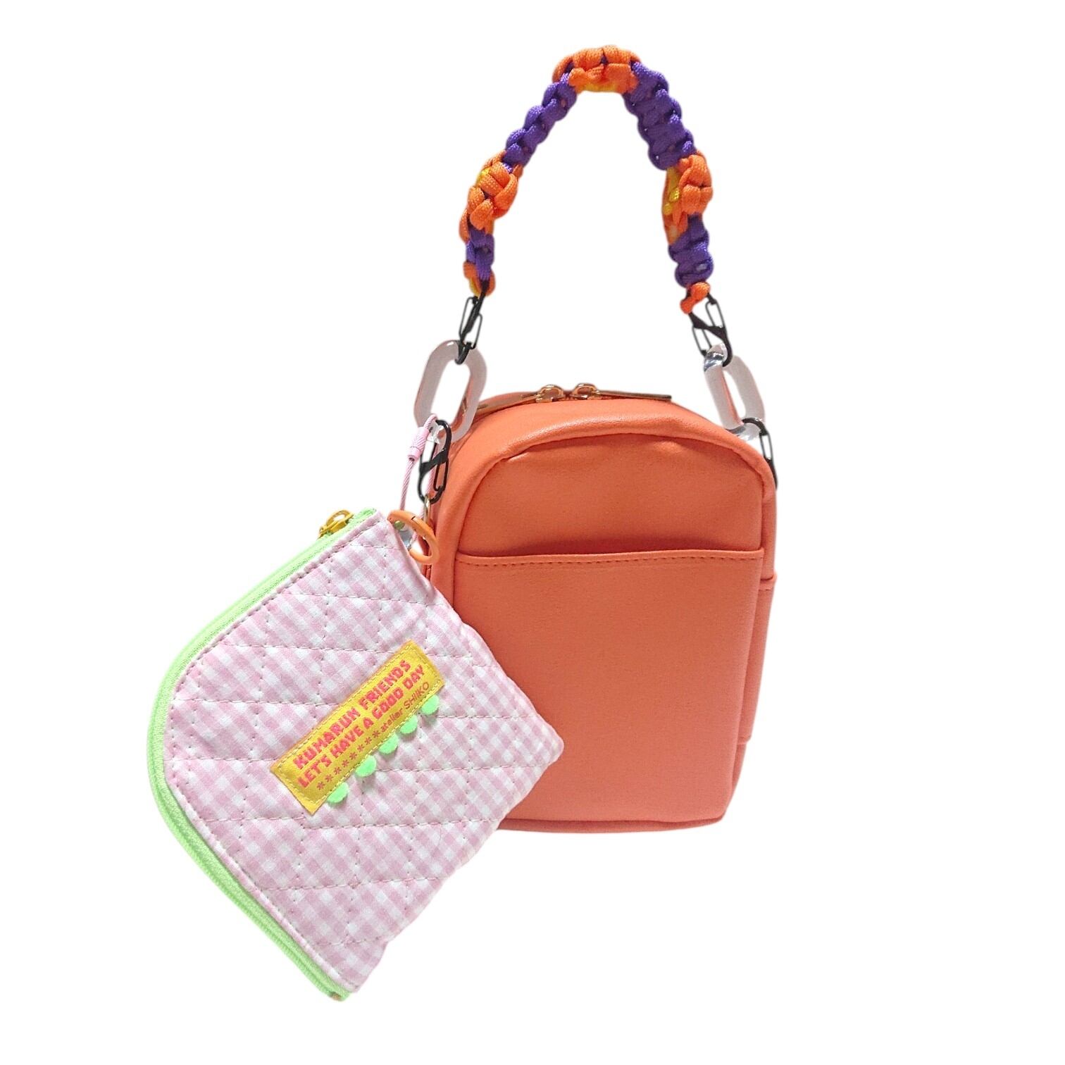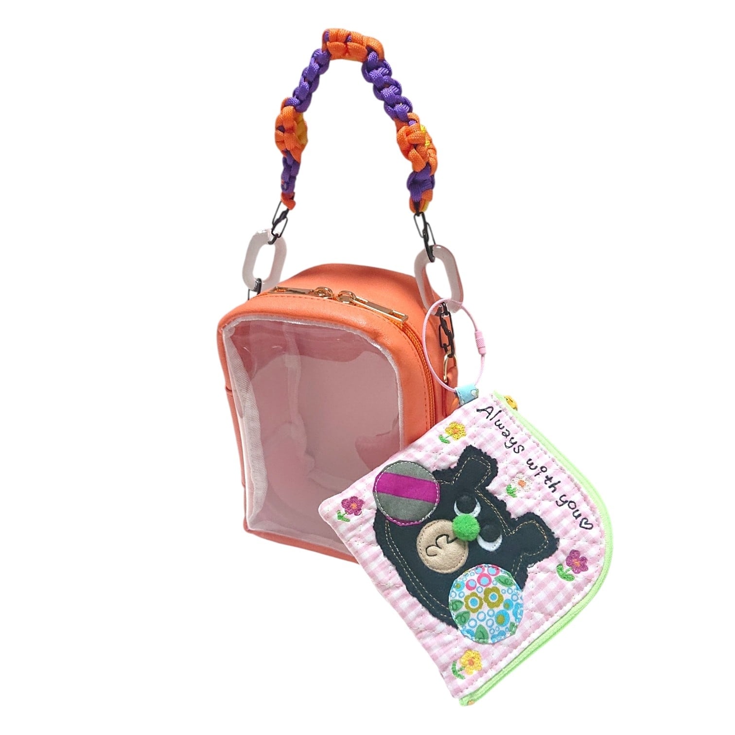 裏面にポケットもついていて便利です。ぬいぐるみポーチと同色の持ち手も一緒にお付けしてお届け致します。