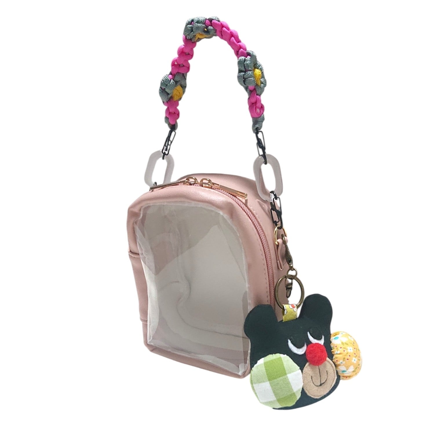 くまるんの可愛いキーホルダーと、持ち手もお花モチーフデザインの可愛いぬいぐるみポーチは裏面にポケットもついていて便利です。ぬいぐるみポーチと同色の持ち手も一緒にお付けしてお届け致します。