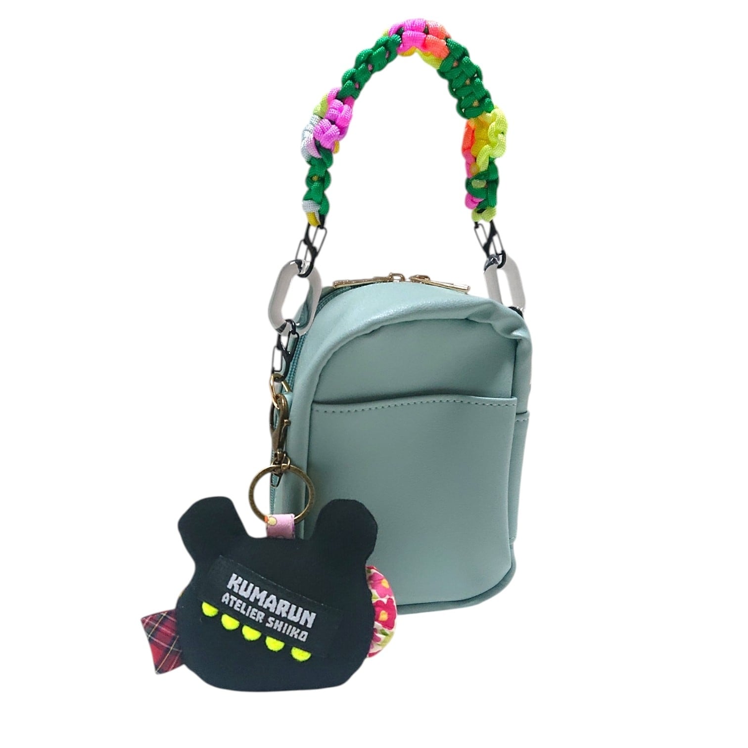 くまるんの可愛いキーホルダーと、持ち手もお花モチーフデザインの可愛いぬいぐるみポーチは裏面にポケットもついていて便利です。ぬいぐるみポーチと同色の持ち手も一緒にお付けしてお届け致します。