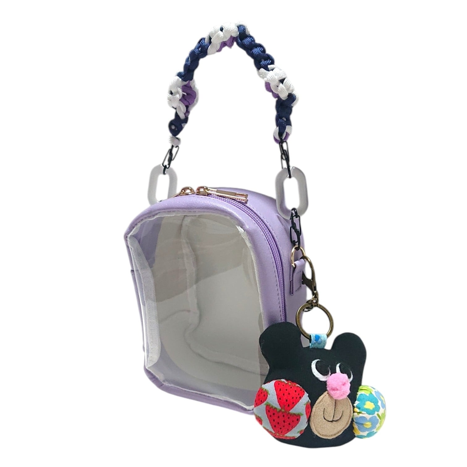 くまるんの可愛いキーホルダーと、持ち手もお花モチーフデザインの可愛いぬいぐるみポーチは裏面にポケットもついていて便利です。ぬいぐるみポーチと同色の持ち手も一緒にお付けしてお届け致します。