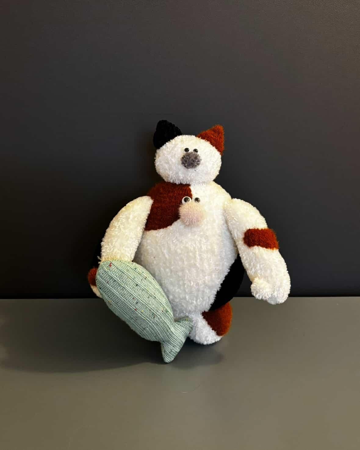 ネコゾッケは、手と魚に磁石が入っていますので ”ムギュー”っと抱っこしたポーズを取ることが可能です。お好きなポーズにしてお楽しみ下さい♡