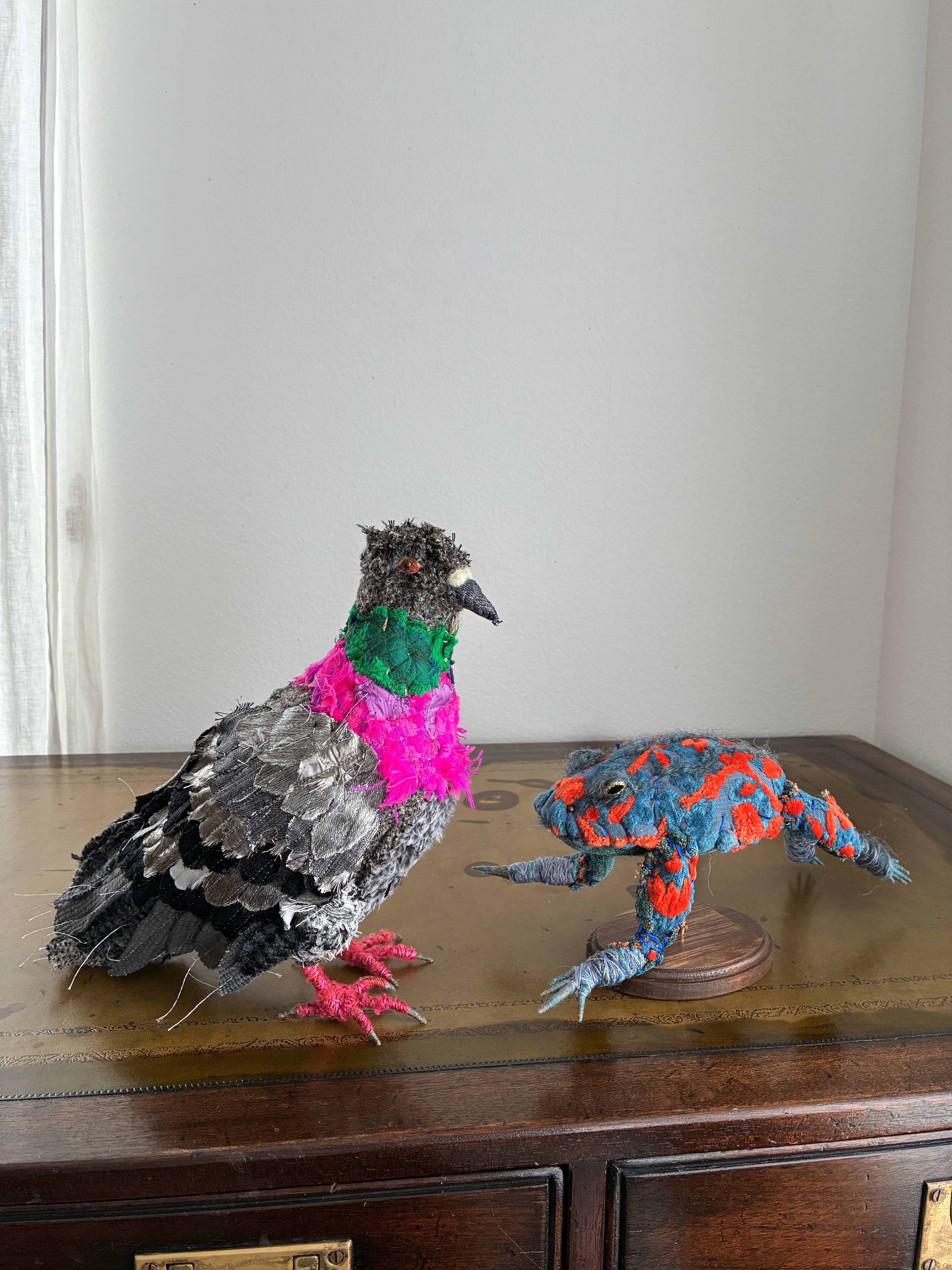 骨格からワイヤーで作る、型紙のない手縫いの動植物オブジェを制作しています。