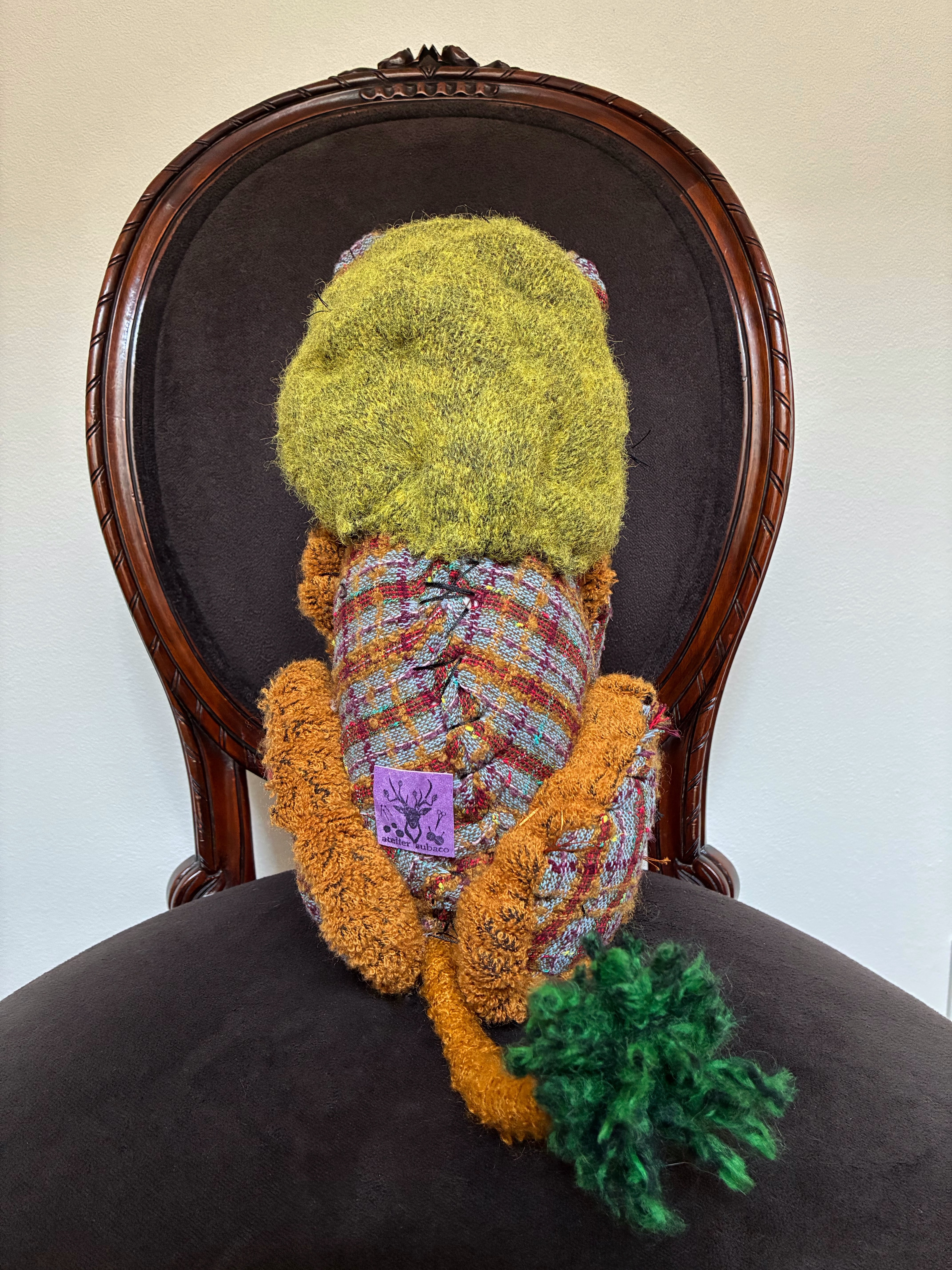 本製品は観賞用の装飾品であり、玩具ではありません。小さなお子様の手の届かない場所でご使用・保管ください。また、本体に強い力を加えると固定された形状のバランスが崩れる場合がありますので、やさしくお取り扱いください。縫い目のほつれのように見える箇所は、手縫いの風合いを生かしたデザインとなりますのであらかじめご了承ください。