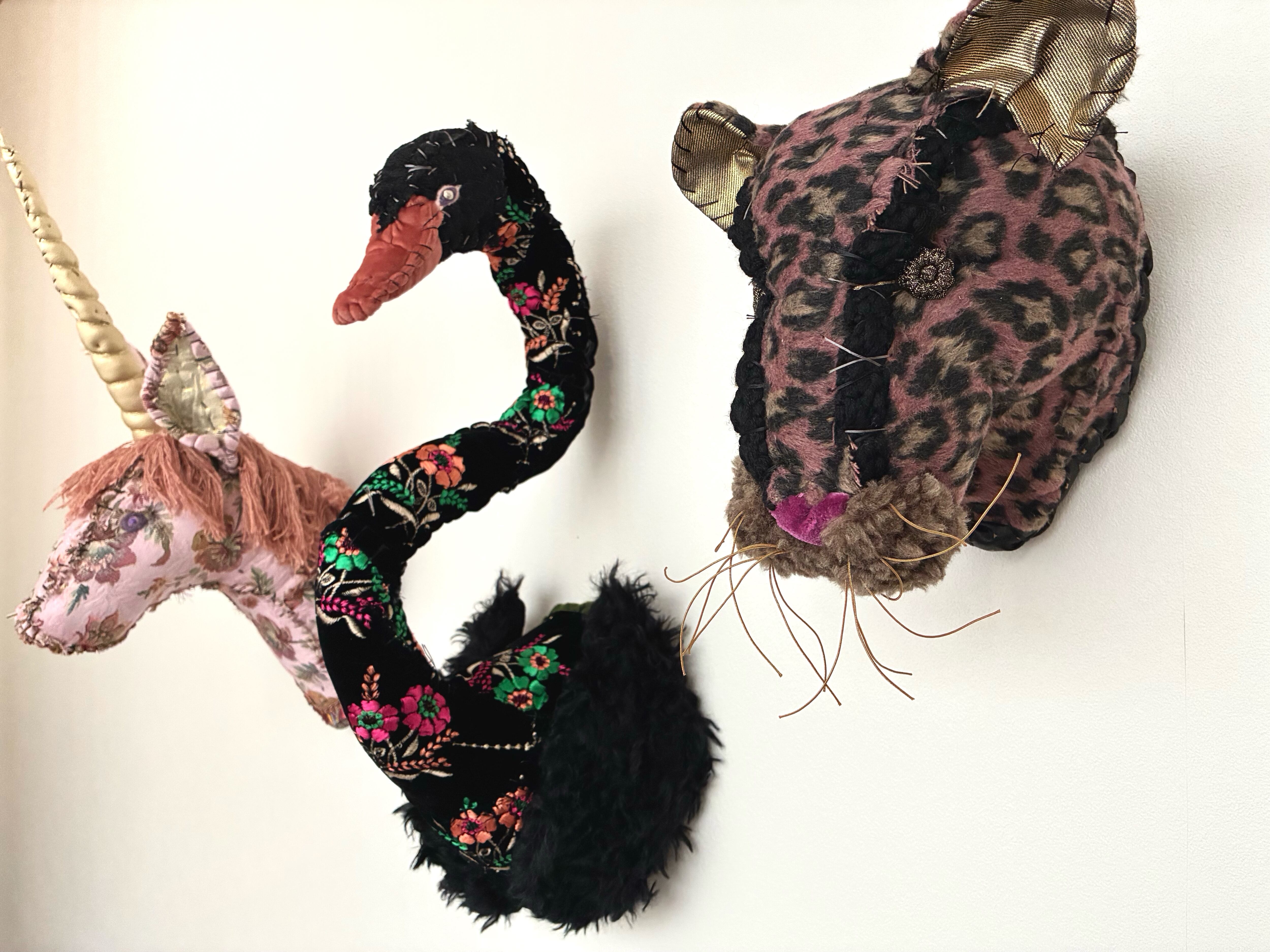 骨格からワイヤーで作る、型紙のない手縫いの動植物オブジェを制作しています。