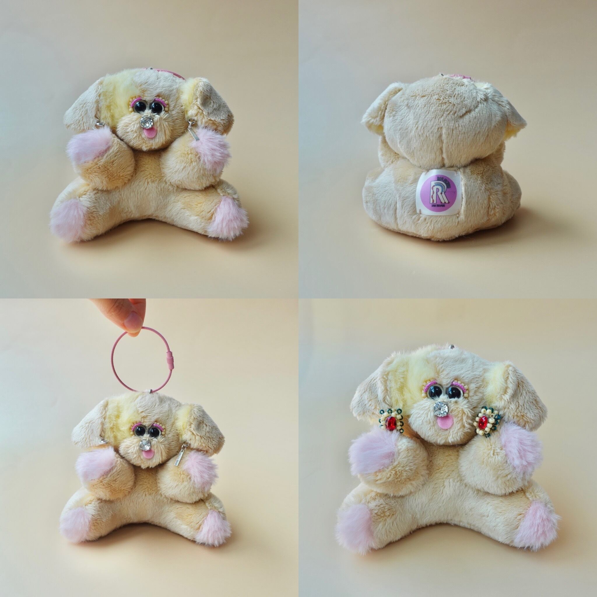 ピアスをつけられるぬいぐるみチャーム/いぬ・ベージュ×ピンク×イエロー