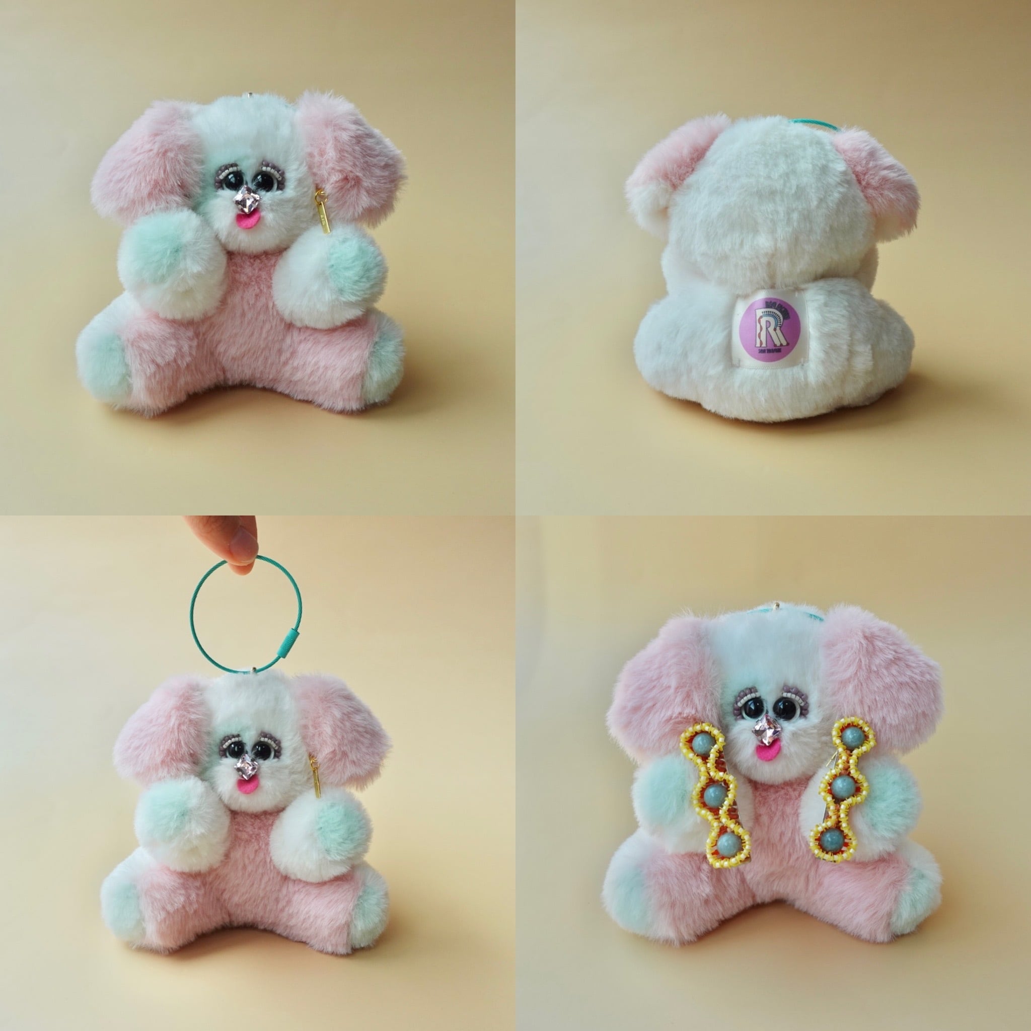 ピアスをつけられるぬいぐるみチャーム / いぬ・ホワイト×ピンク×ミント