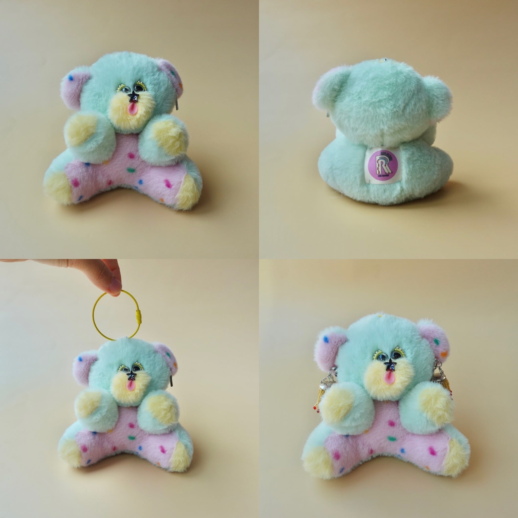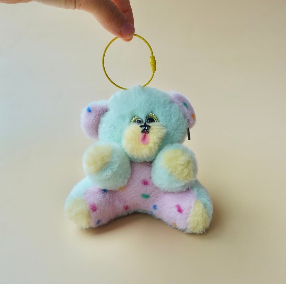 ピアスをつけられるぬいぐるみチャーム/くま・ミント×ポップピンク×イエロー