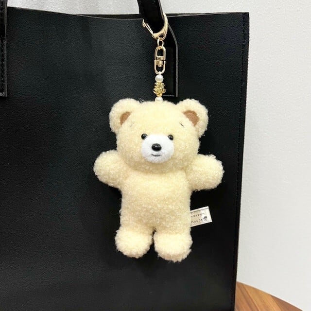 □ハグして♡と手を大きく広げて待っているような、可愛いくまのマスコットキーホルダー。