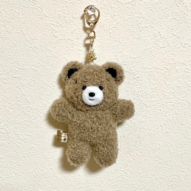 □ハグして♡と手を大きく広げて待っているような、可愛いくまのマスコットキーホルダー。