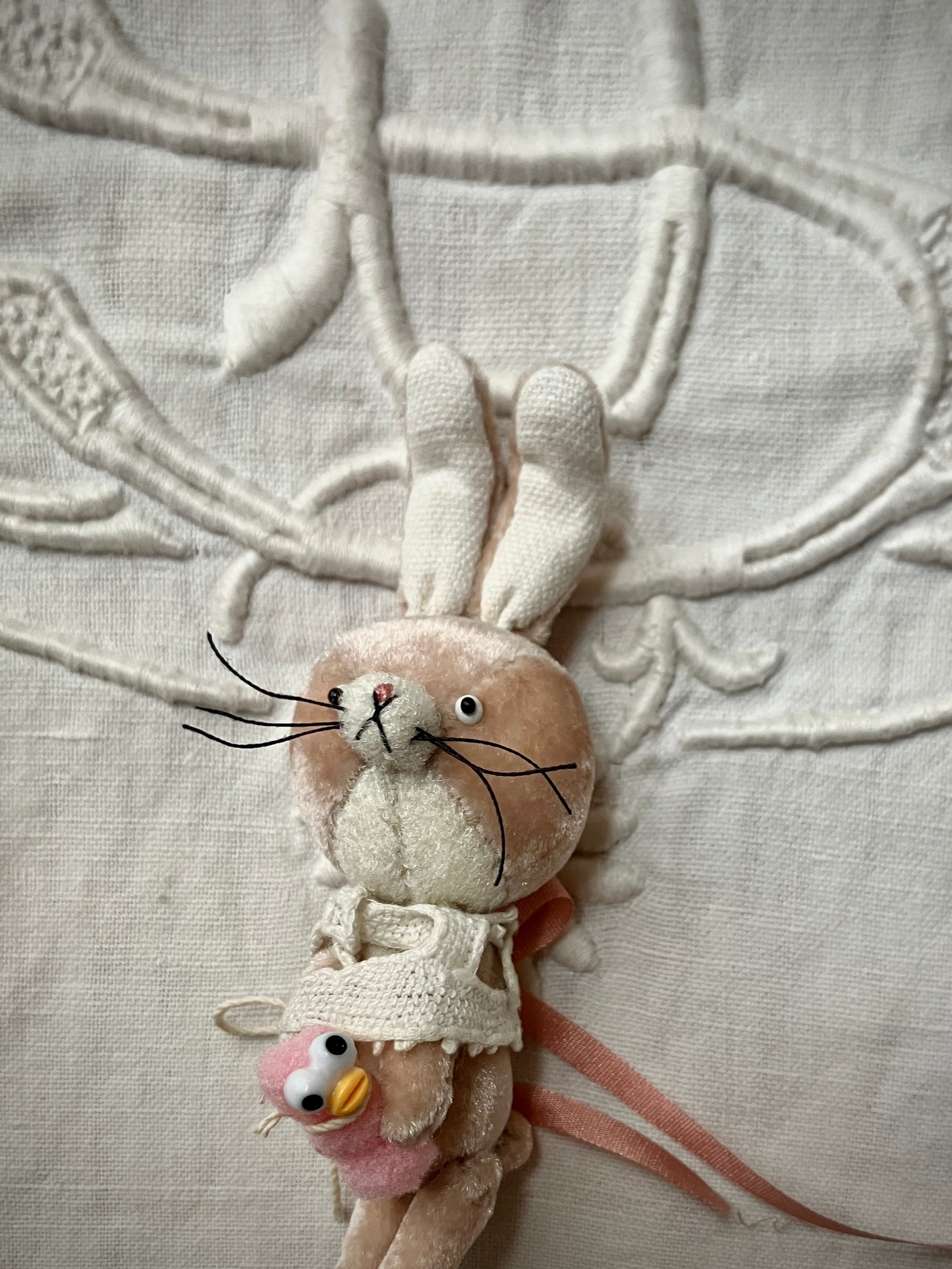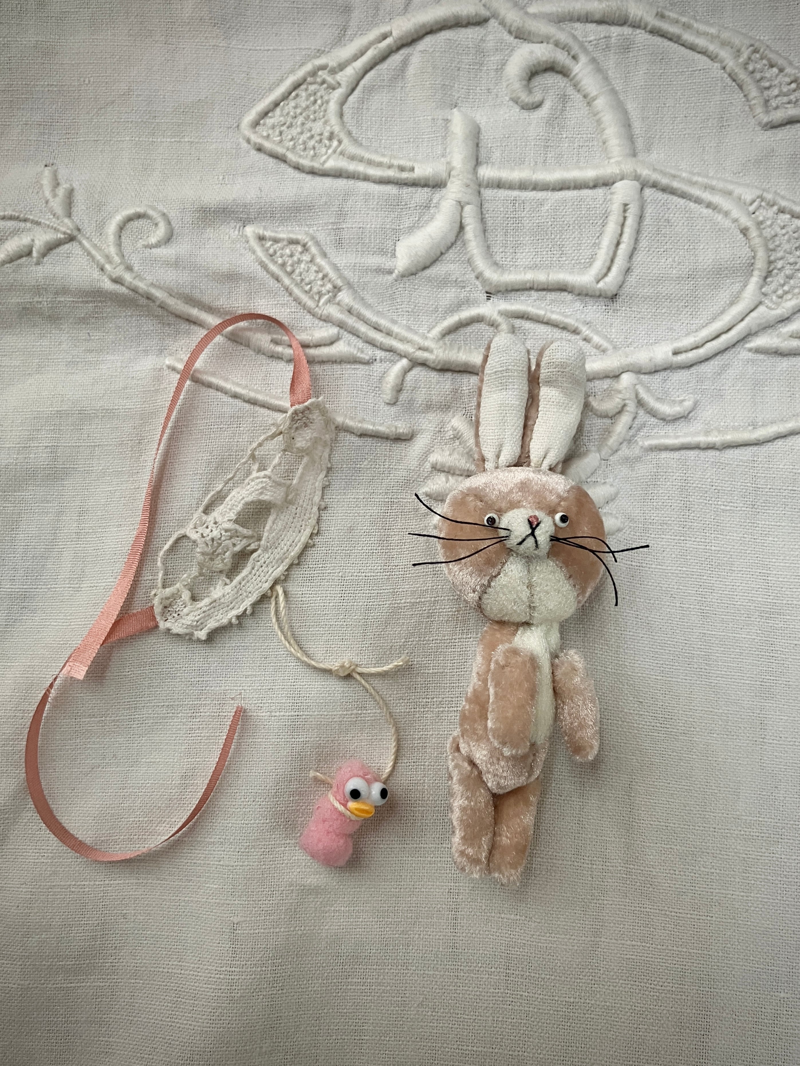アンティークレースを身にまとった、可愛いちびうさぎ♡