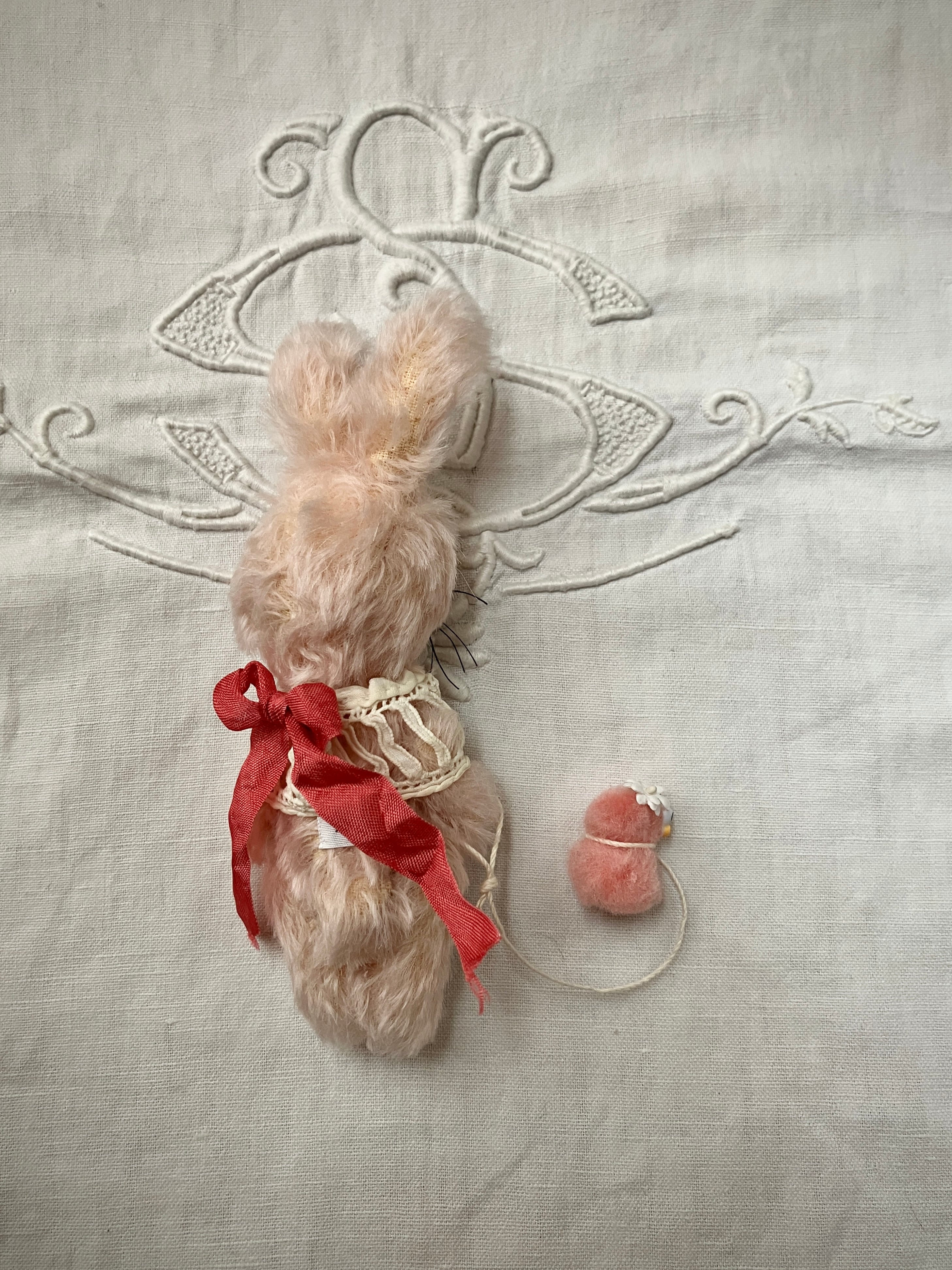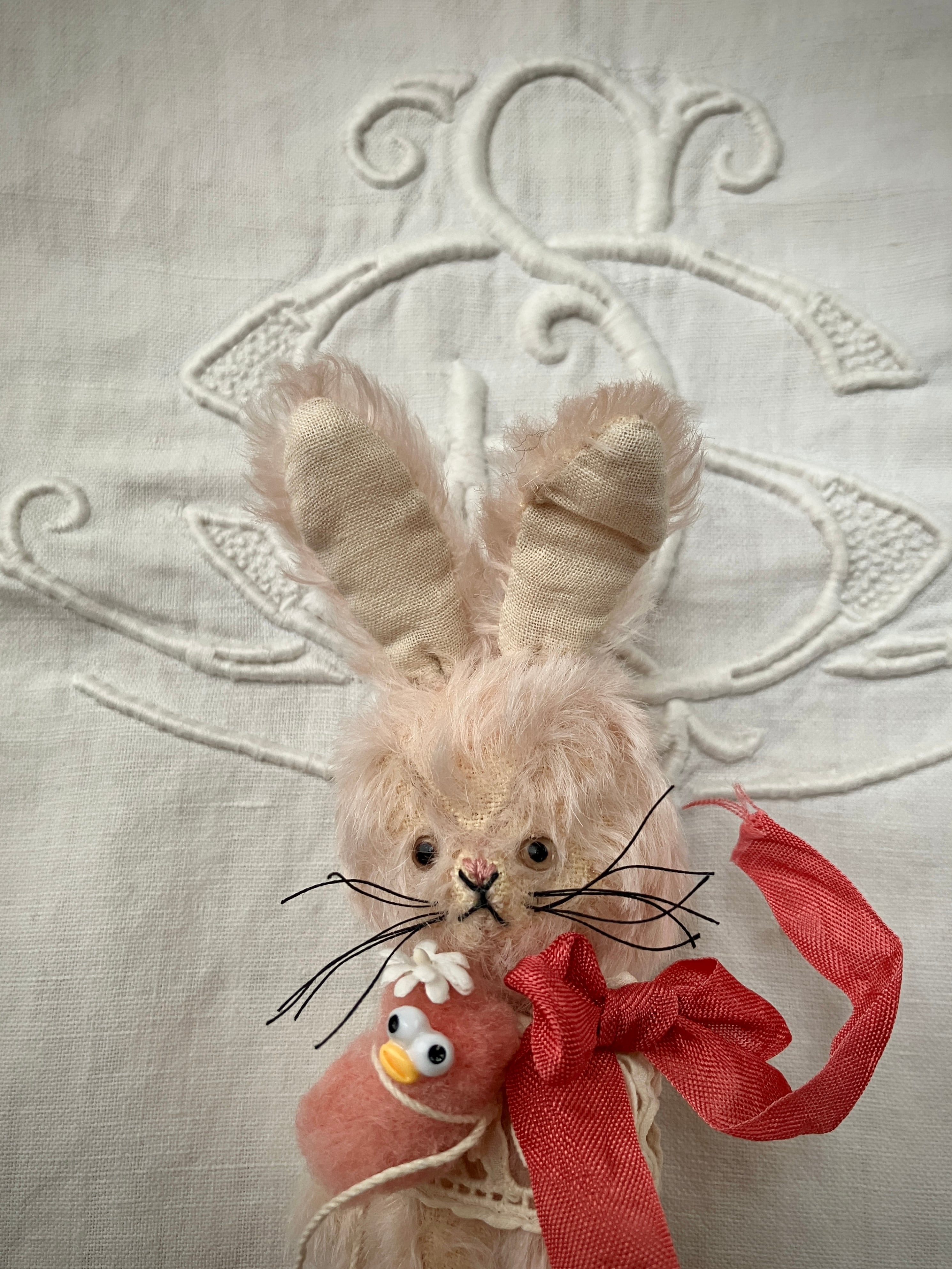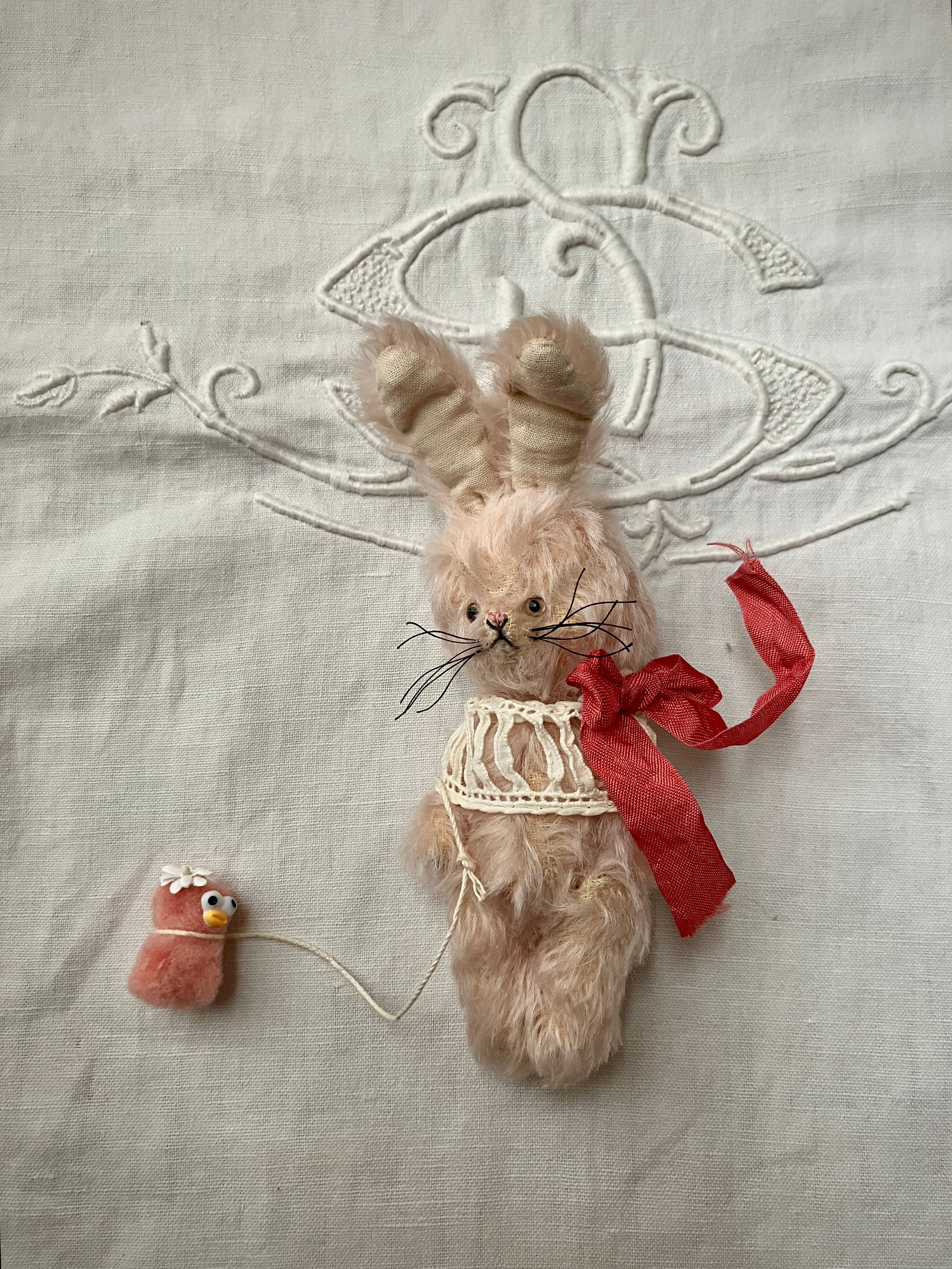 □アンティークの付け襟をつけた、可愛いうさぎ。