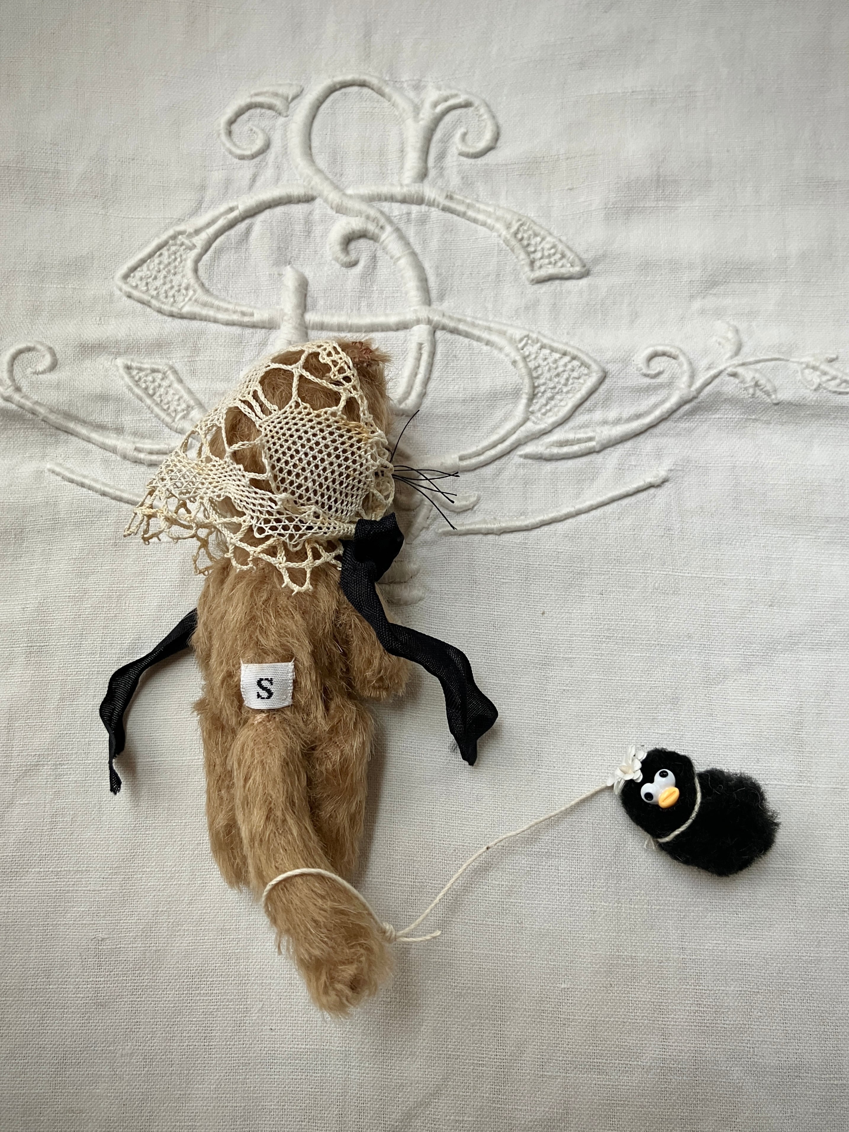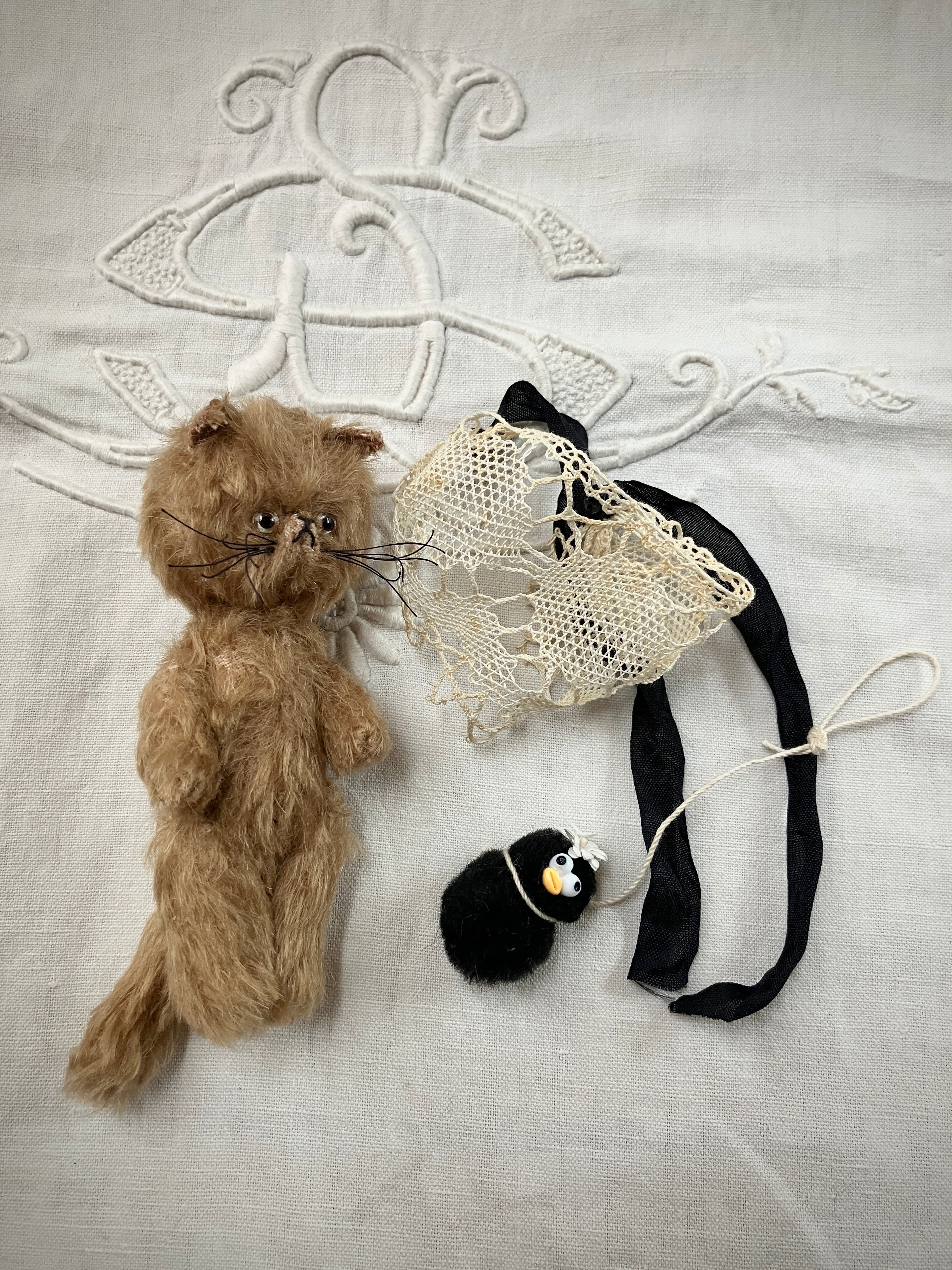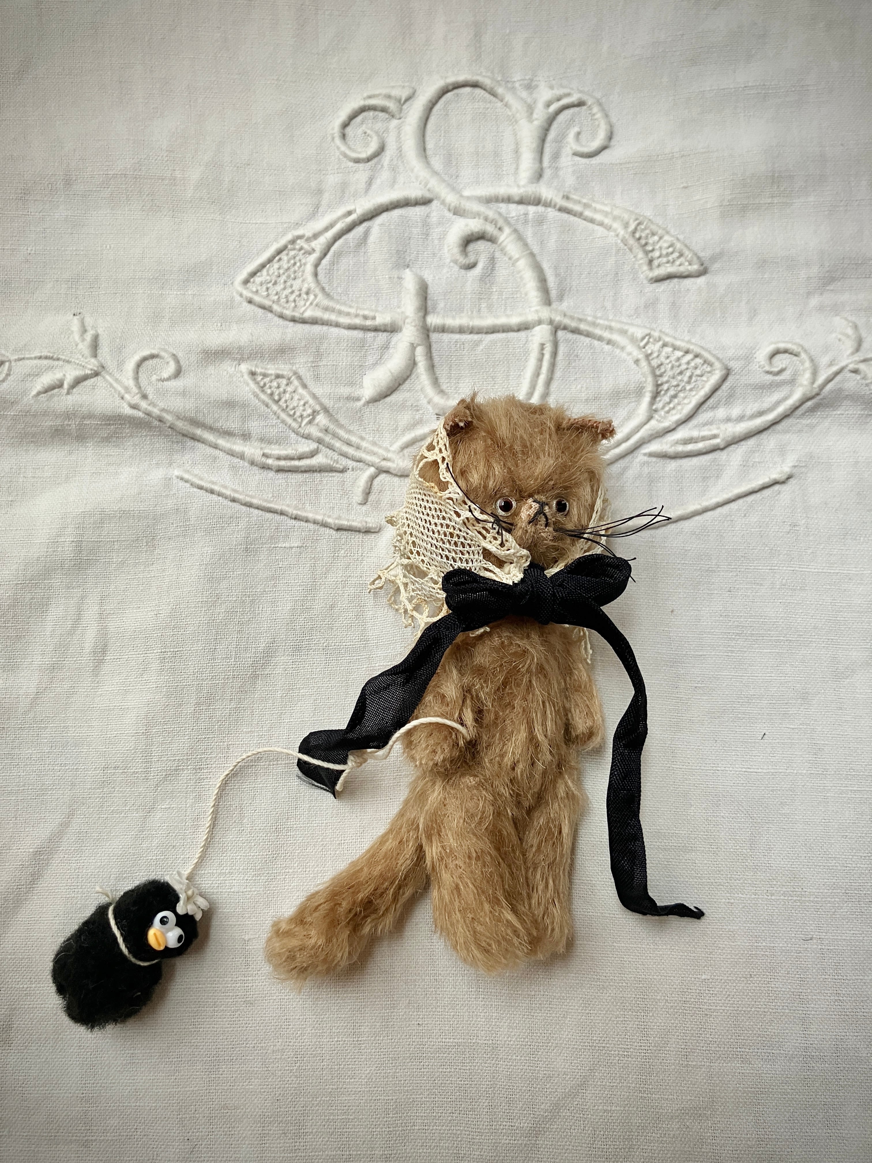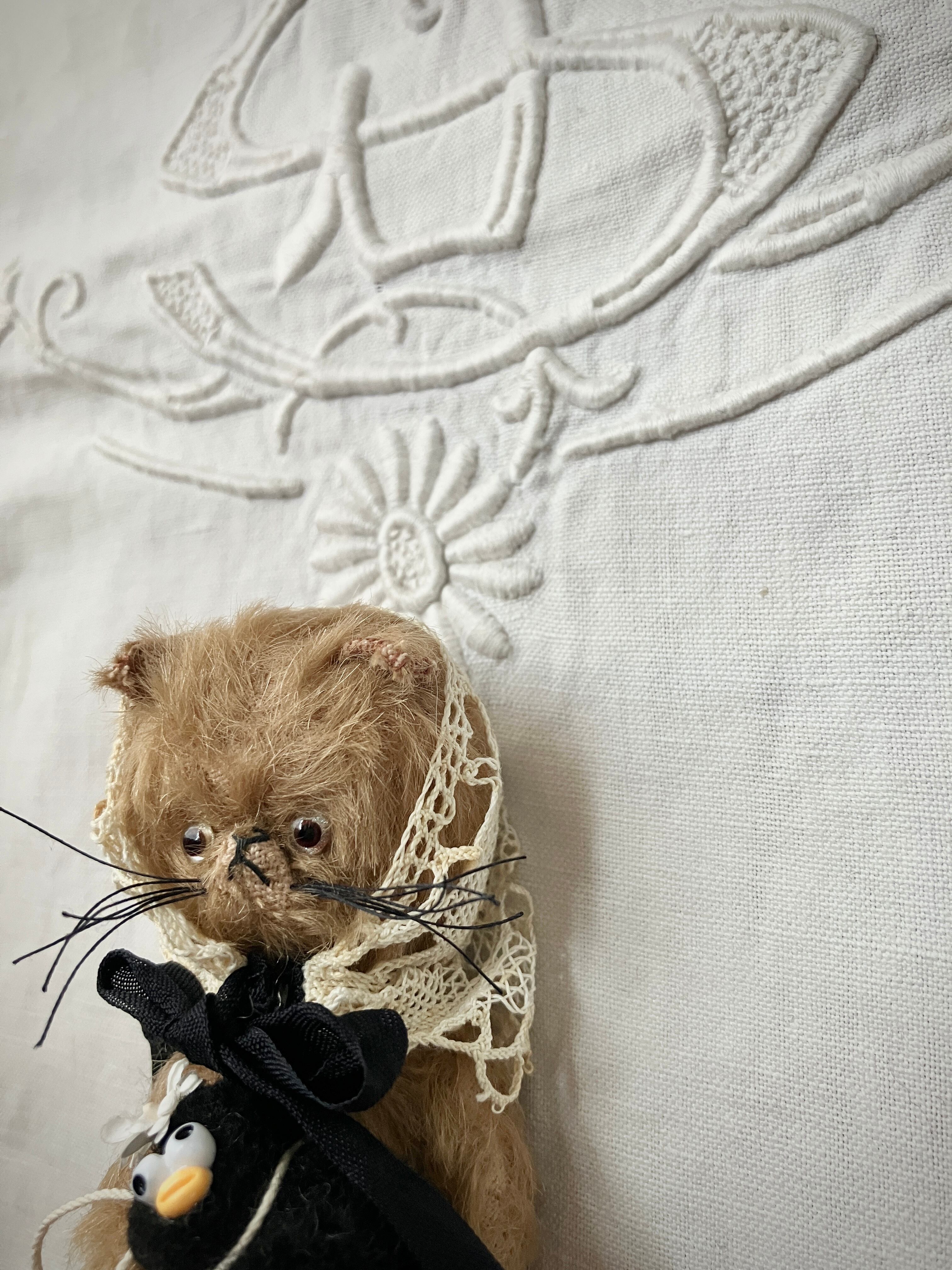 □アンティークのバブーシュカをつけた、可愛いねこ。