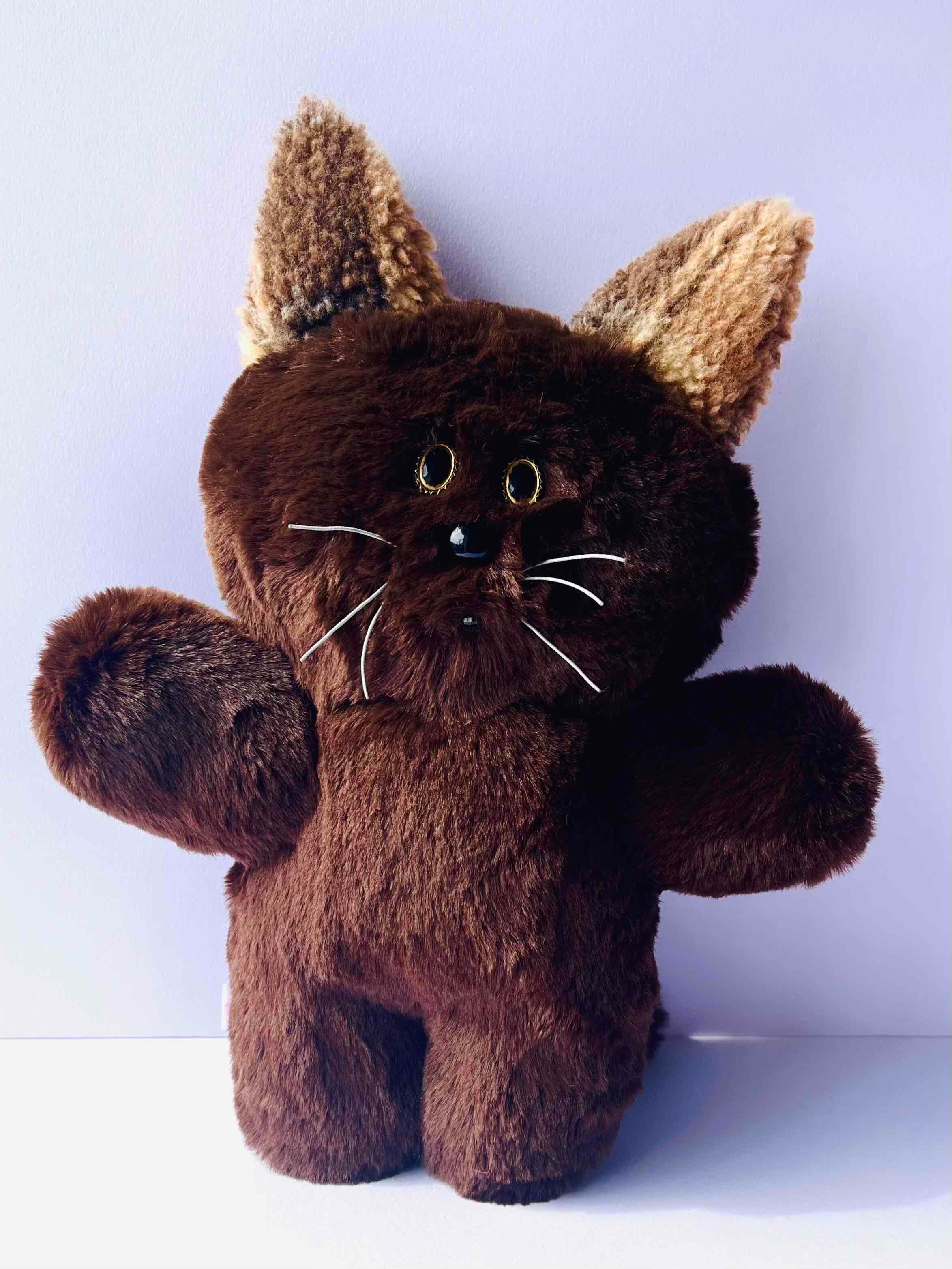 ボタンを目に使ったり、左右に広がるヒゲがポイント!!もこもこのお耳も可愛いよ♡