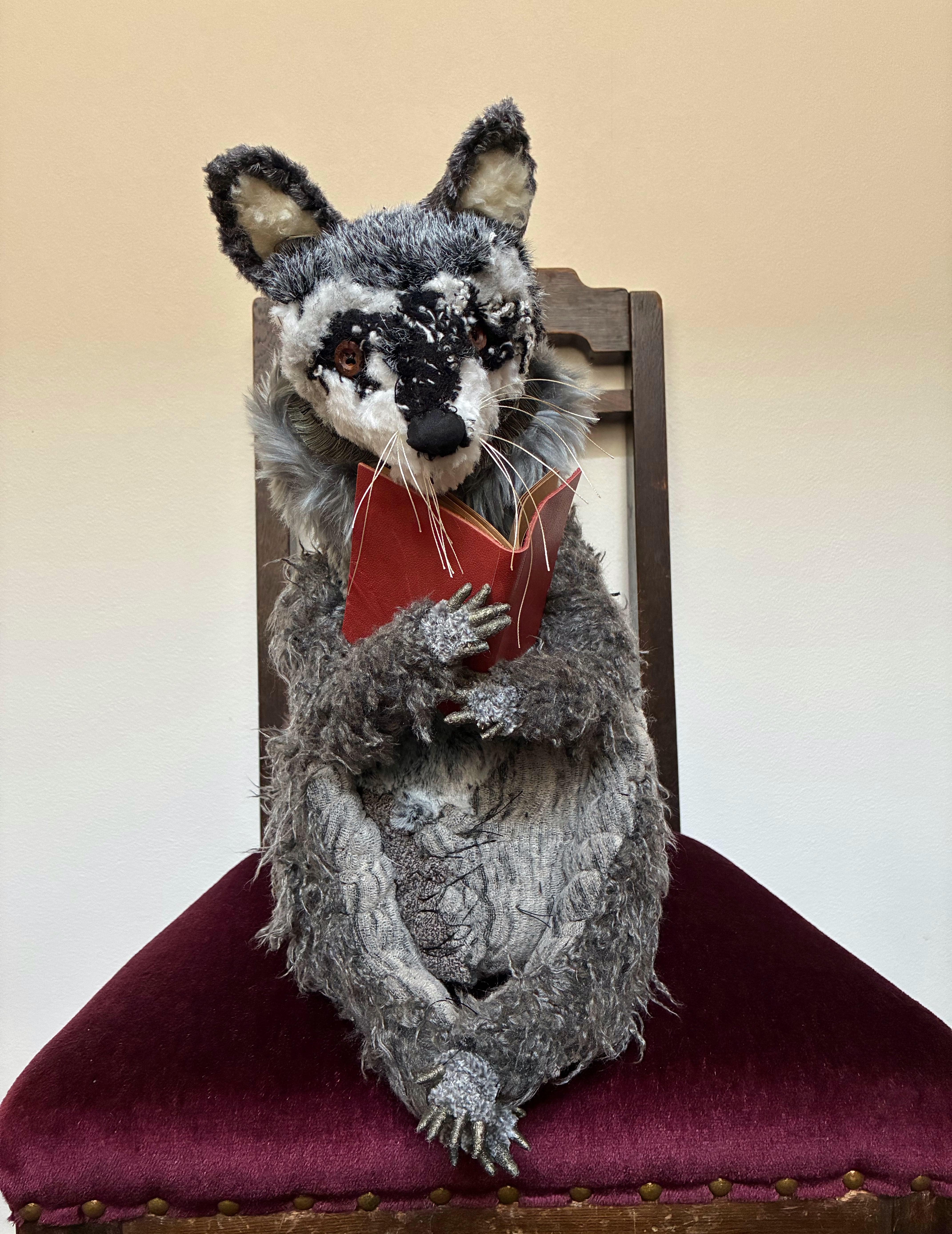 □細部までリアルに作られています、読書シリーズのアライグマのオブジェ