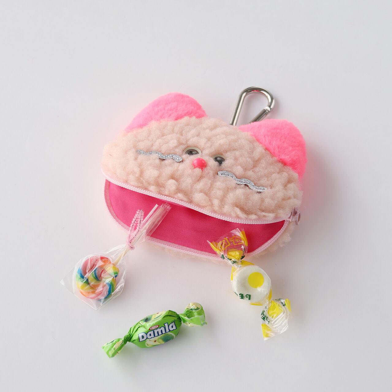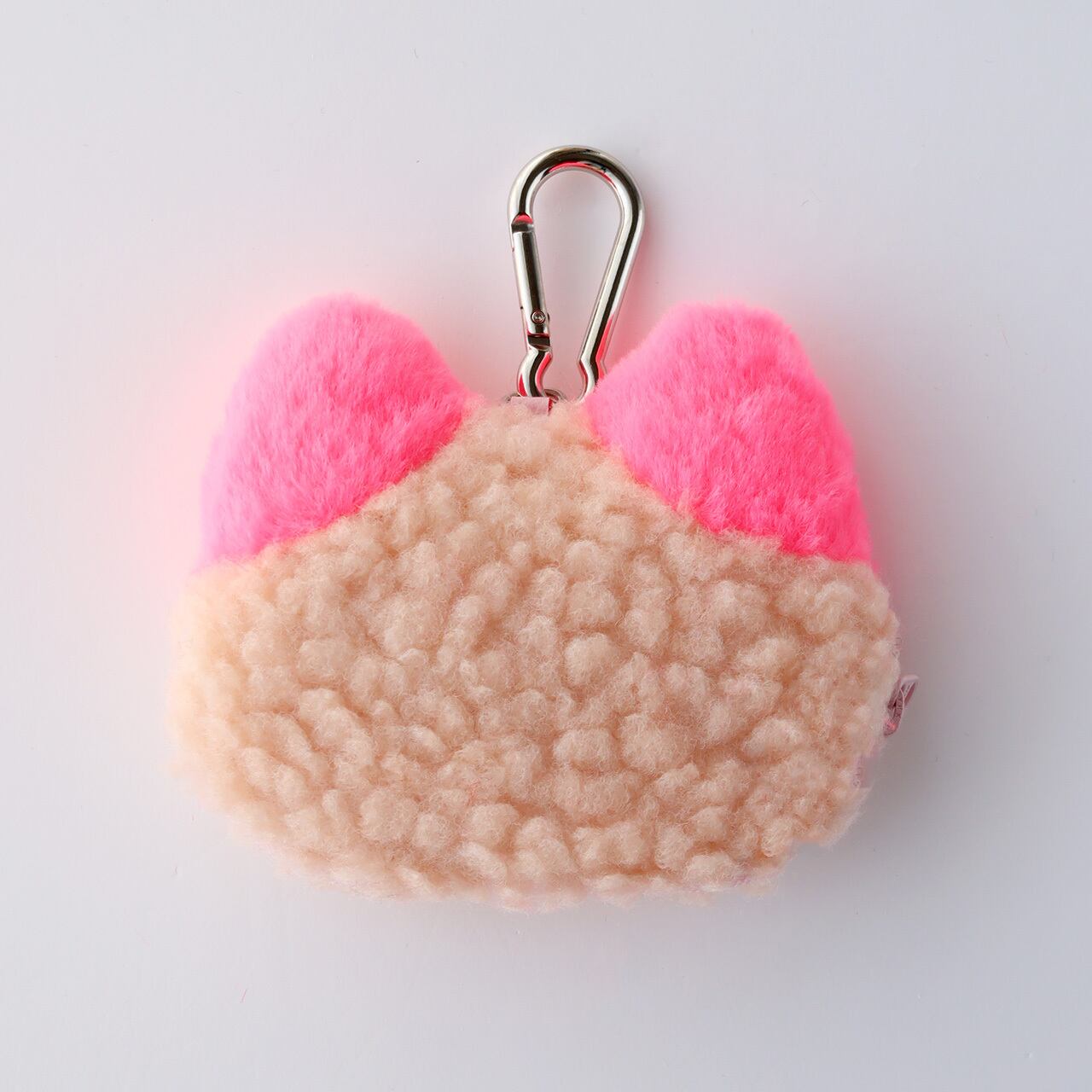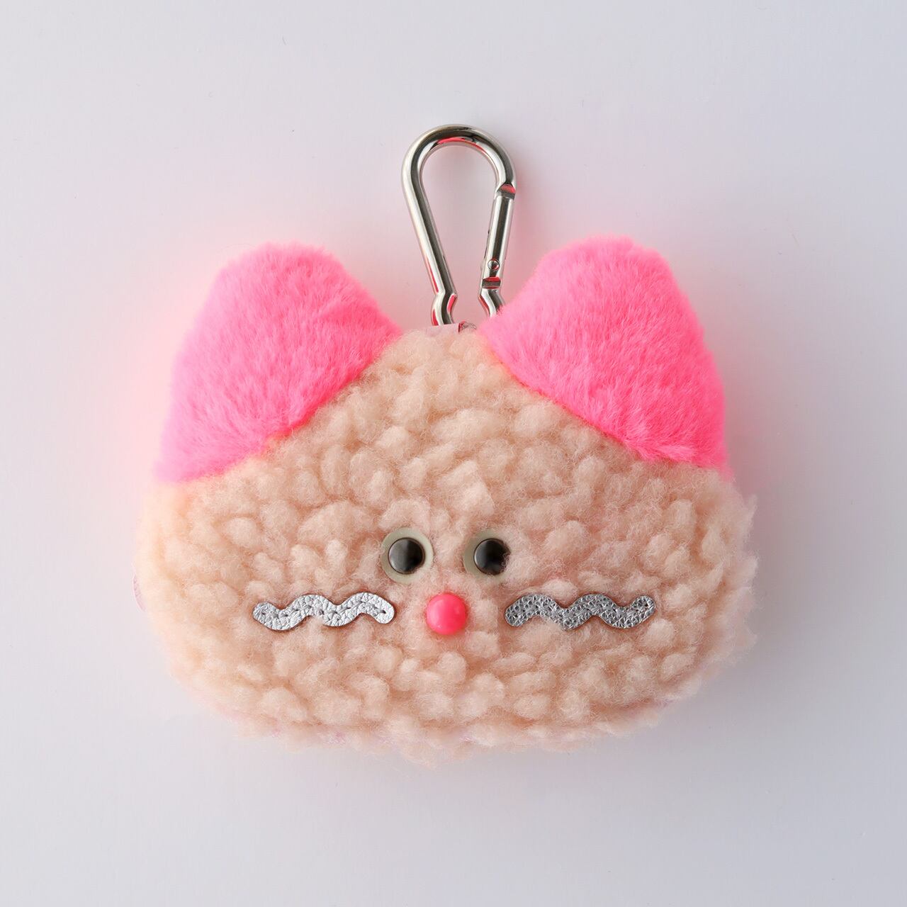 □カラビナがついたふわふわおにゃんこのミニポーチです。