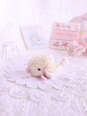 □ぽっくりお口が可愛いお魚のぬいぐるみは、レースのヘッドドレスをつけて