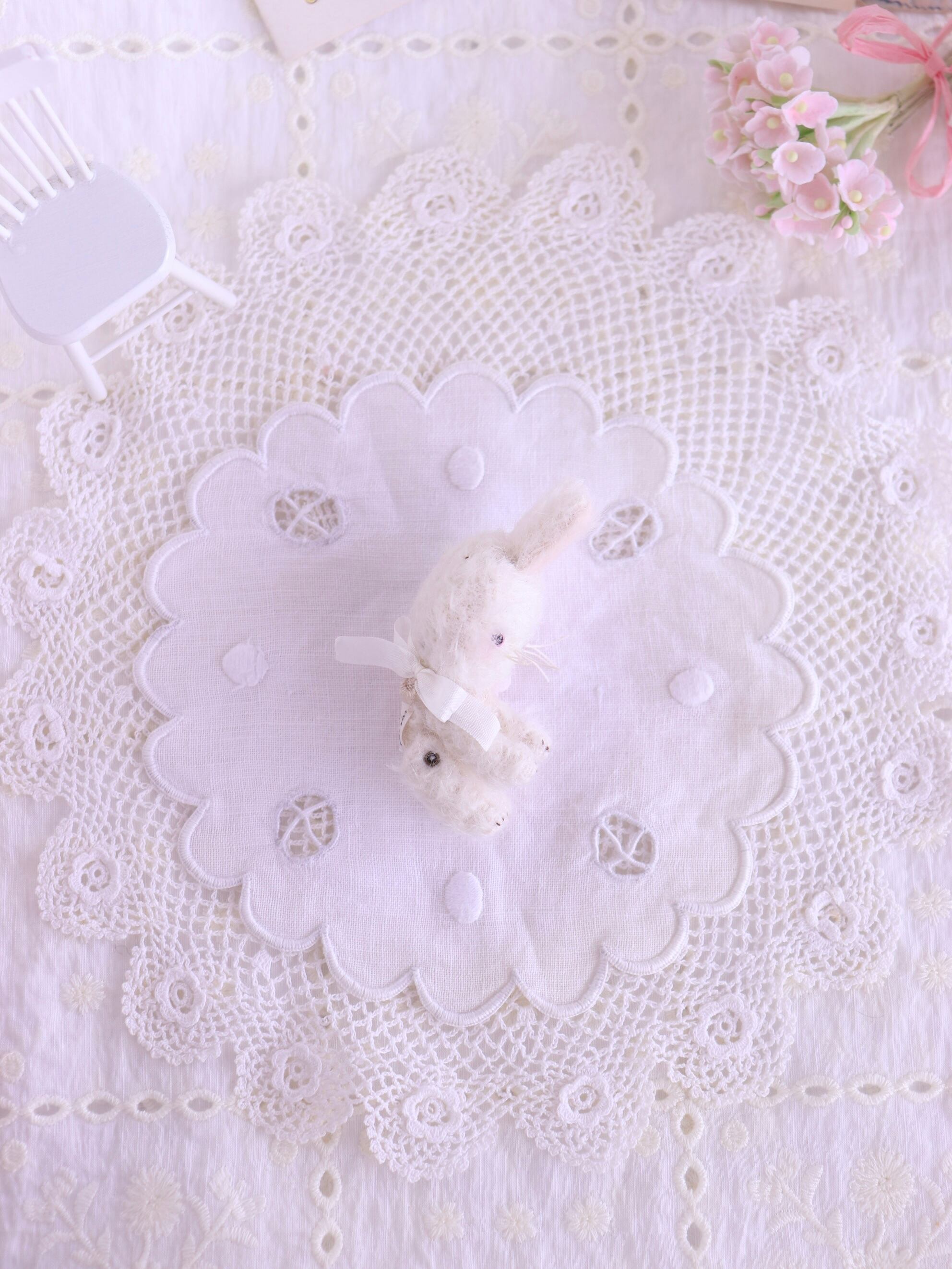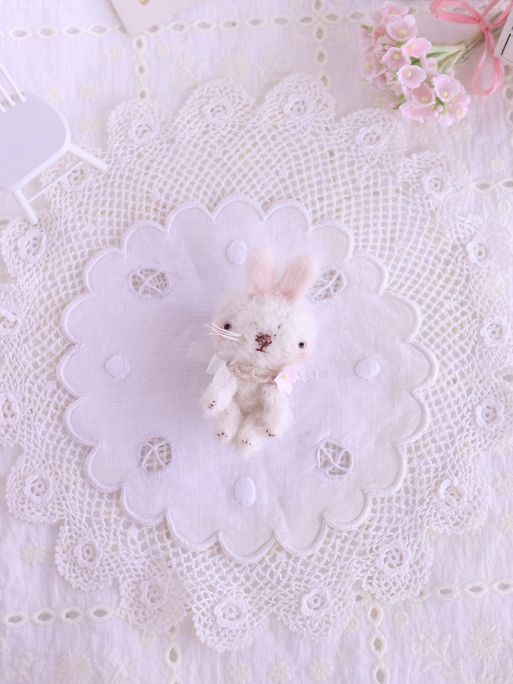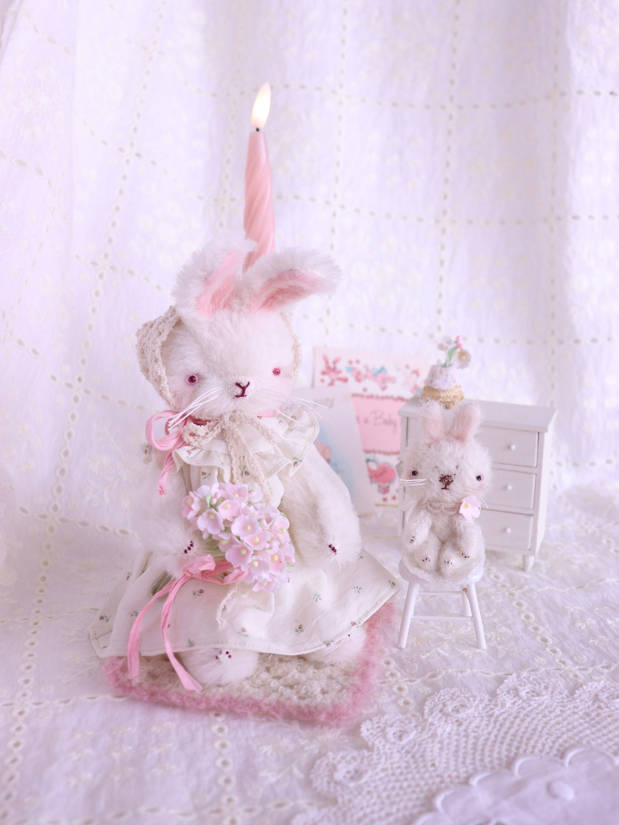 □優しいお顔をした、小さなうさぎさんは手足が動きます。