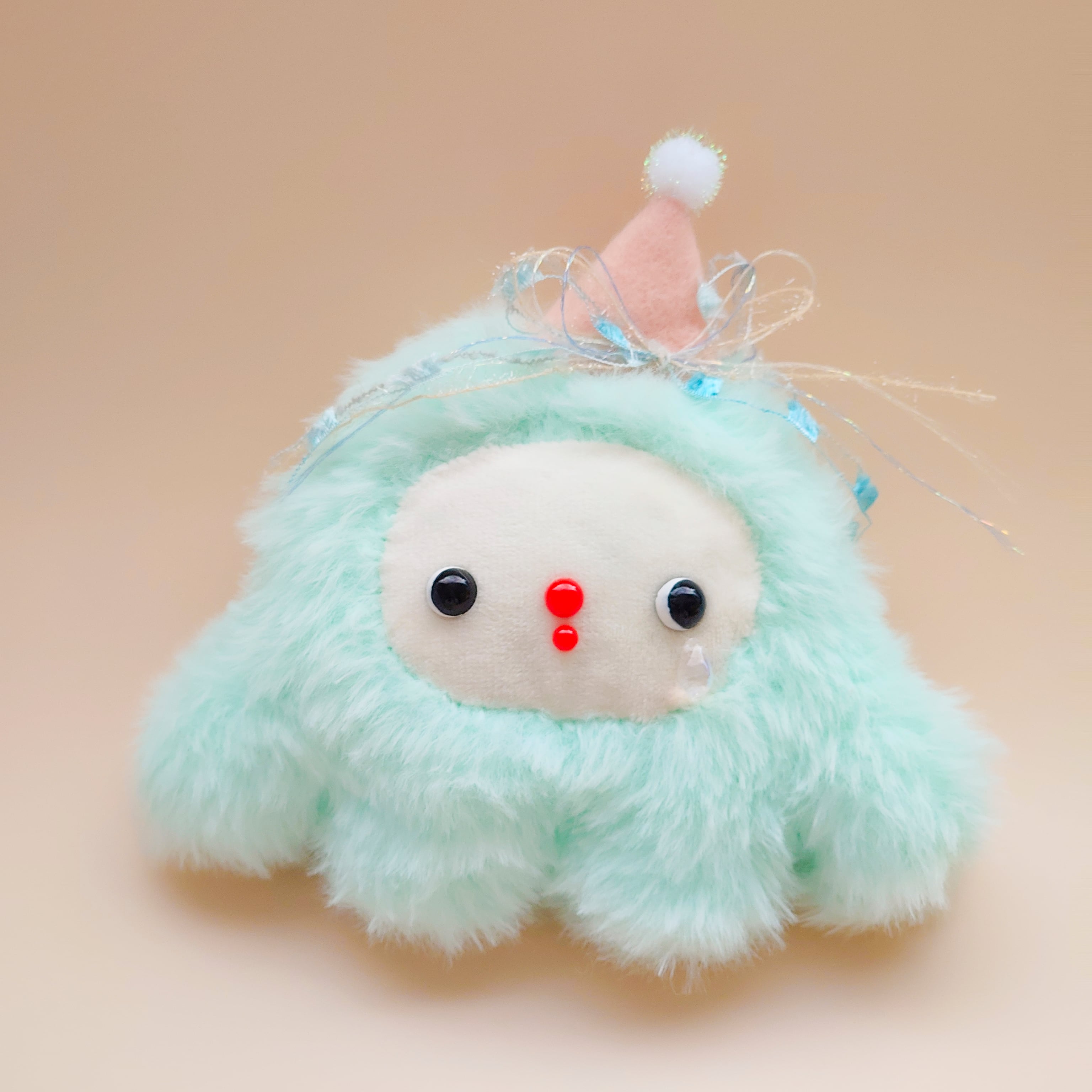 左頬の涙のしずくは「悲しみ」を、頭の上のパーティー帽子は「喜び」や「楽しみ」を表しているよ。