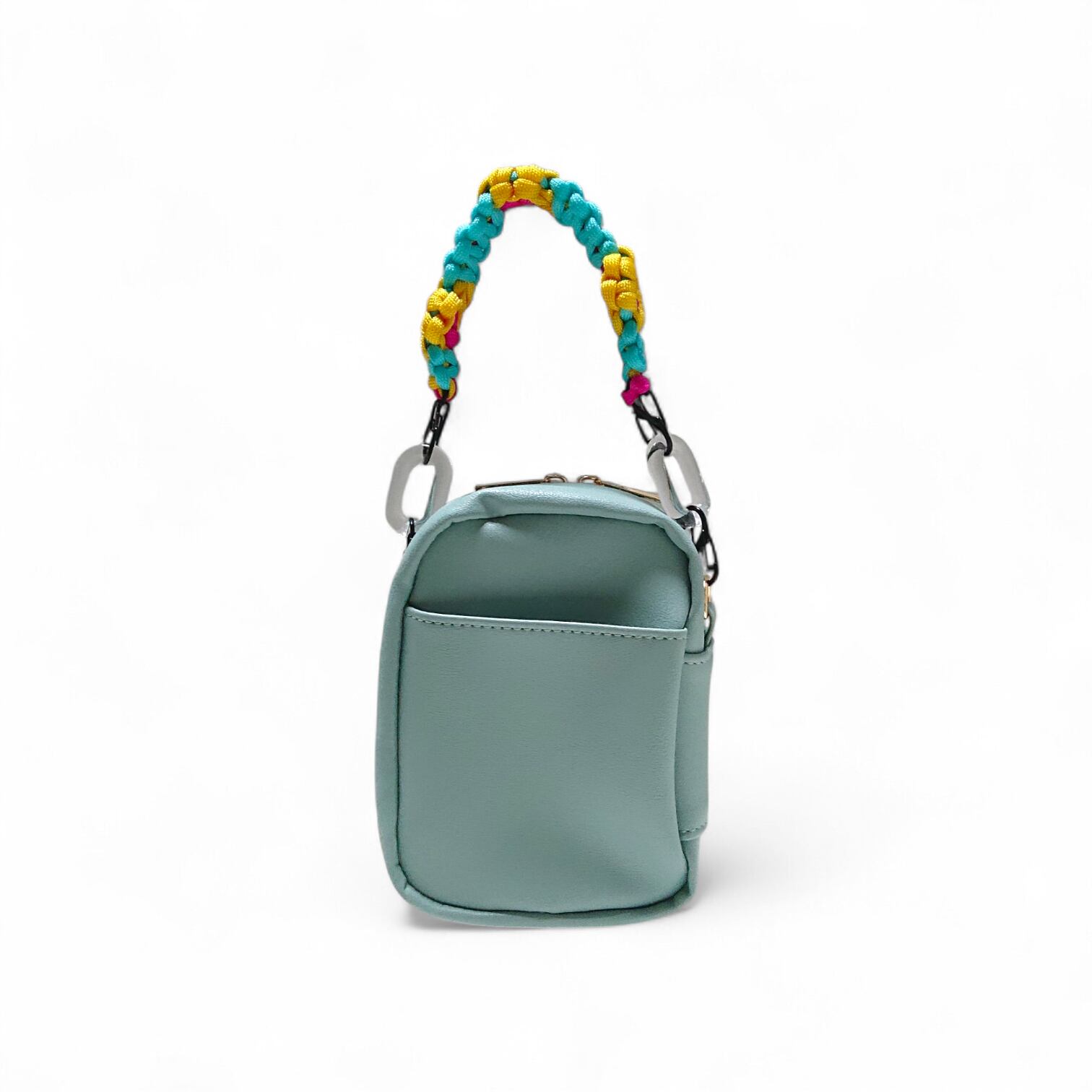 裏面にポケットもついていて便利です。持ち手は、irodori cordお花モチーフになっています。